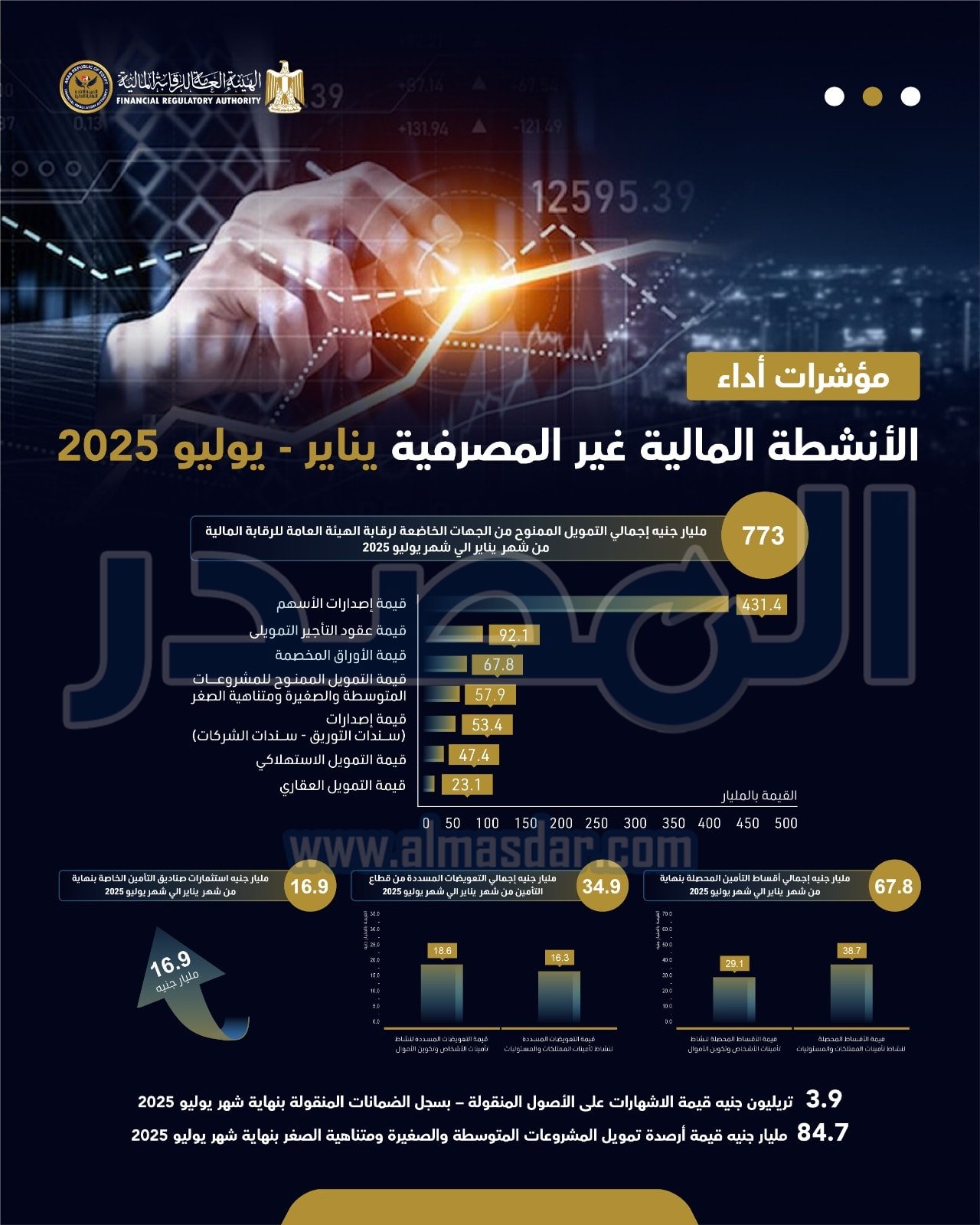 التمويل غير المصرفي في مصر يسجل 773 مليار جنيه خلال 7 أشهر