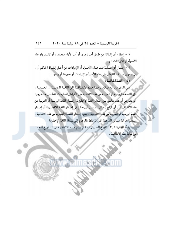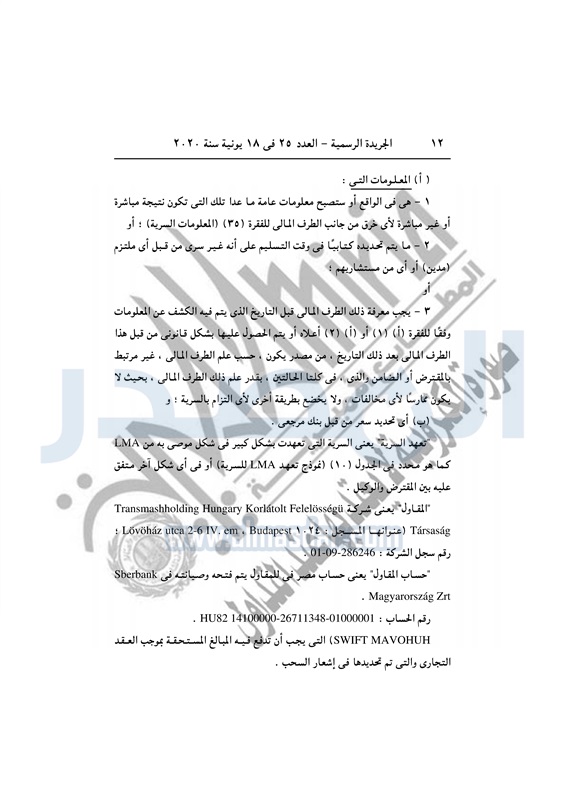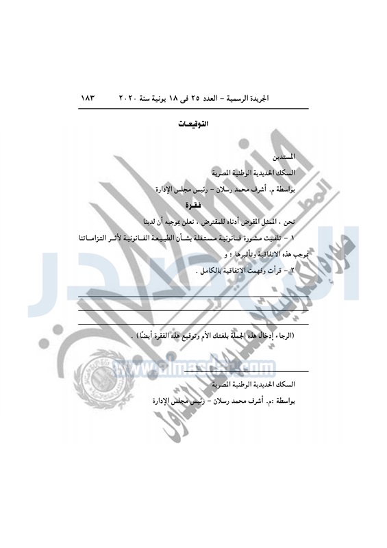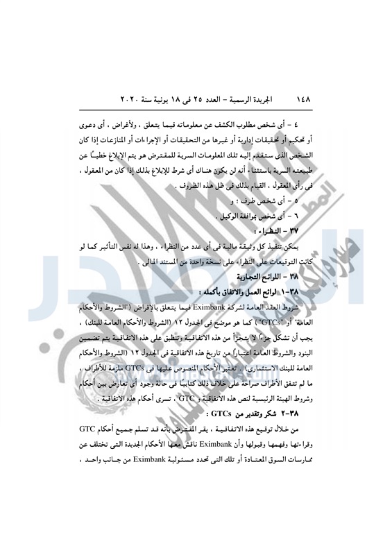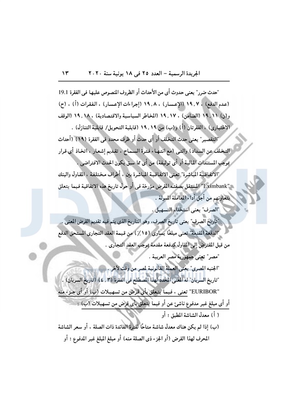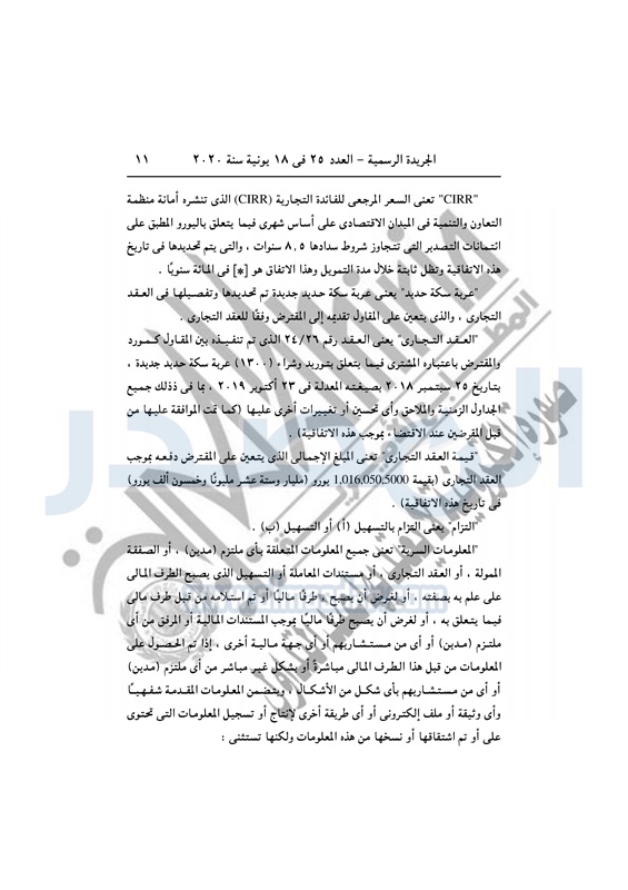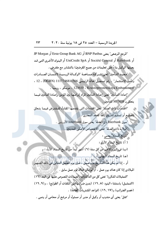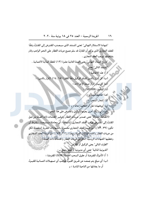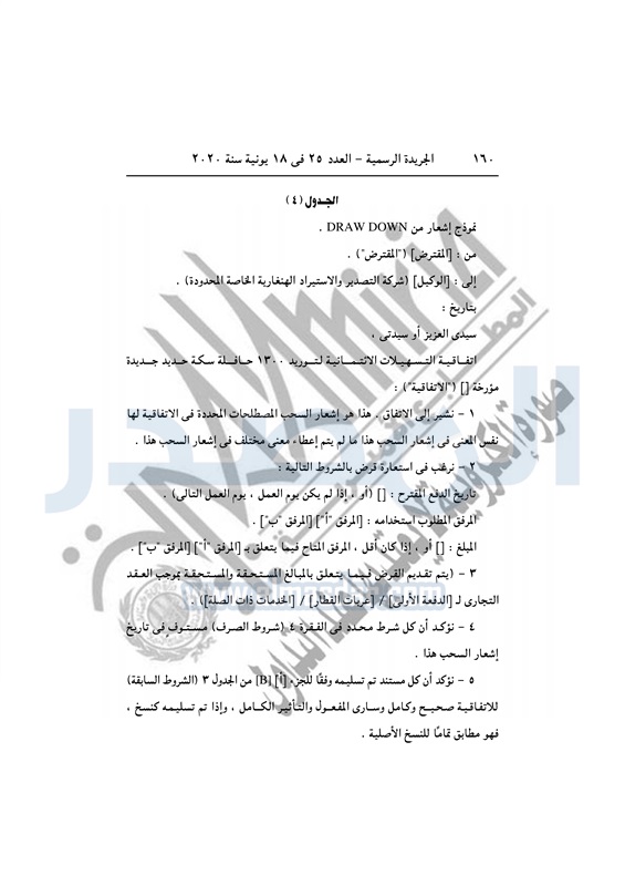 نشرت الجريدة الرسمية في العدد رقم 24 مكرر "ج" بتاريخ 17 مايو 2020، قرار رئيس الجمهورية رقم 14 لسنة 2020 ، بالموافقة على اتفاقية التسهيلات الائتمانية لتوريد 1300 عربة سكة حديد جديدة بين السكك الحديدية الوطنية المصرية والبنك المجري للتصدير والاستيراد، وبنك الاستيراد والتصدير الروسي بمبلغ مليار و16 مليونا و50 ألف يورو والموقعة بتاريخ 12 ديسمبر 2019.