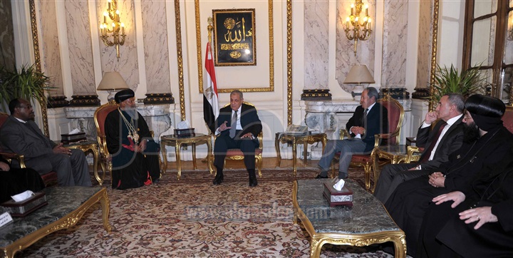 استقبل المهندس إبراهيم محلب، رئيس مجلس الوزراء، مساء اليوم، بطريرك الكنيسة الإثيوبية، والوفد المرافق له، الذي يزور القاهرة حاليا، بحضور وزيري التجارة والصناعة، والصحة المصريين.