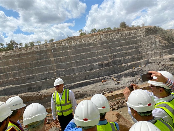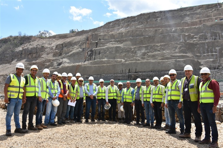 وعقد الوزير اجتماعا موسعاً لاستعراض حجم الأعمال المُنفذة بالمشروع حتى الآن، وتجول ومرافقوه لمتابعة الأعمال الجاري تنفيذها بالسد الرئيسي بالمشروع، ونفق تحويل مسار النهر، والذي تم الانتهاء منه بالكامل، ومن المتوقع أن يتم تحويل مسار النهر خلال هذا الشهر، ثم توجه الوزير ومرافقوه لمنطقة مأخذ المياه حيث يوجد 3 أنفاق لنقل المياه من الخزان إلي التوربينات، وكذا محطة توليد الكهرباء، وتحتوي على 9 توربينات، حيث تفقدوا أعمال حفر وتفجير الصخر بالمحطة، والتي بلغت حتي الآن حوالي 2 مليون م3، بالإضافة إلى أعمال الخرسانات وتثبيت جوانب الحفر.
