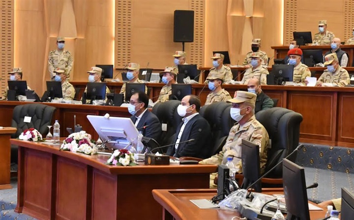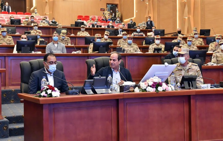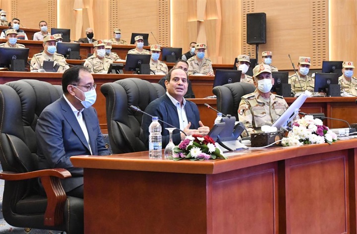 ورافق الرئيس ، الدكتور مصطفى مدبولي رئيس مجلس الوزراء، والفريق أول محمد زكي القائد العام للقوات المسلحة وزير الدفاع والإنتاج الحربي، والفريق محمد فريد رئيس أركان حرب القوات المسلحة، وعدد من قادة القوات المسلحة.