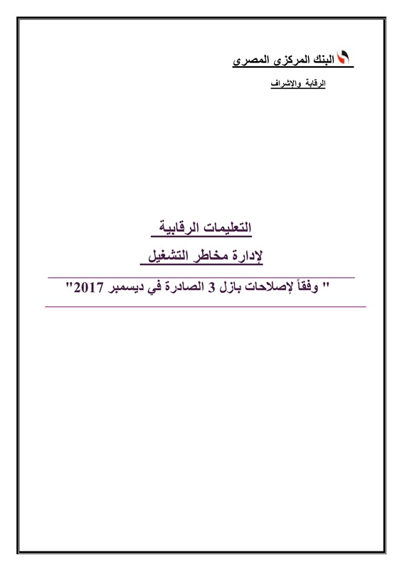 وذكر أنه سبق أن أصدر في 24 ديسمبر 2012، التعليمات الرقابية الخاصة بتطبيق الحد الأدنى لمعيار كفاية رأس المال إعمالا للمقررات سالفة الذكر، والتي تضمنت كيفية حساب مخاطر االتشغيل، وذلك في إطار إستراتيجية البنك المركزي المصري، للسعي نحو تطبيق أفضل الممارسات الدولية في مجال الرقابة المصرفية خاصة مقررات لجنه بازل.