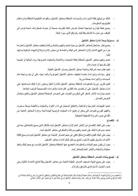 ونوه إلى أنه في ضوء توصيات تلك اللجنة الصادرة في ديسمبر 2017 والخاصة بالاصلاحات النهائية لتطبيقات مقررات بازل 3، فقد صدرت ورقة مناقشة في سبتمبر 2019 بشأن "إدارة مخاطر التشغيل والحد الأدنى لرأس المال الرقابي اللازم لمقابلتها" والتي تضمنت أسلوبا جديدا لقياس مخاطر التشغيل يسمى بالأسلوب المعياري ليحل محل أسلوب المؤشر الأساسي المتبع حاليا، وقد أرفق بها نماذج لدراسة الأثر الكمي لبيان أثر تطبيقها على البنوك للعمل بها كتعليمات رقابية ُملزمة.