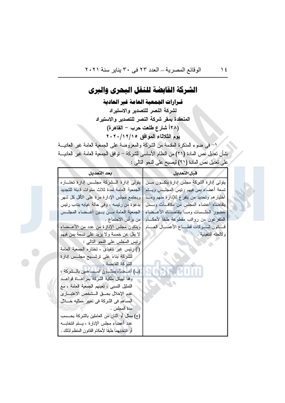 استثمار الجريدة الرسمية تنشر قرارات «النصر للتصدير والاستيراد» السبت 30 يناير 2021 - 03:07 م 1/30/2021 3:07:19 PM صورة أرشيفية المصدر - خاص طباعة شارك نشرت الوقائع المصرية في العدد 23، في 30 يناير 2021، قرارات الجمعية العامة غير العادية لشركة النصر للتصدير والاستيراد يوم الثلاثاء الموافق 15-12-2020.وفيما يلي نص القرار: طباعة شارك وزارة قطاع الأعمال شركة النصر للاستيراد الجريدة الرسمية تابع المصدر علي جوجل نيوز تطبيق نبض