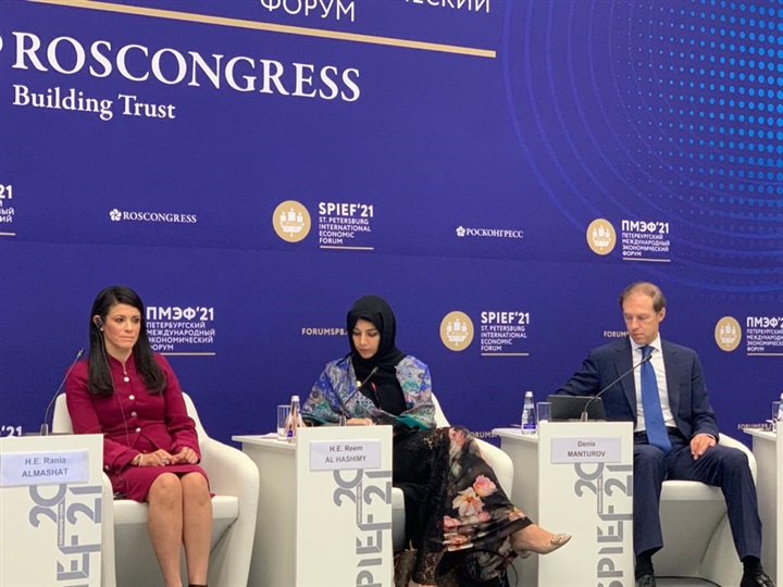 وجاء ذلك خلال مشاركتها في جلسة نقاشية تحت عنوان «التعاون الدولي كمحرك للتنمية المستدامة»، والتي تعقد ضمن فعاليات منتدى سانت بطرسبرج الاقتصادي الدولي خلال الفترة من 2-5 مايو الجاري، وشارك في الجلسة دينيس مانتروف، وزير الصناعة والتجارة الروسي، وريم الهاشمي، وزيرة التعاون الدولي الإماراتية، وأركادي دوركوفيتش، رئيس مؤسسة سكولكوفو، وإيتشيرو ماتسوي، عمدة أوساكا اليابانية، وأدار الجلسة الإعلامية الجورجية، تيناتن كانديلاكي.