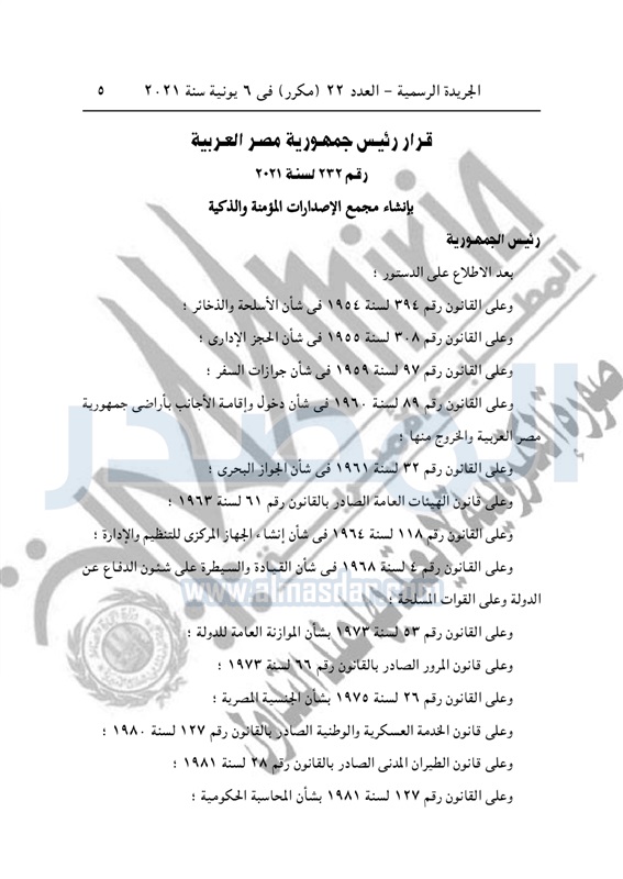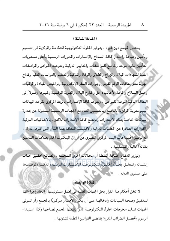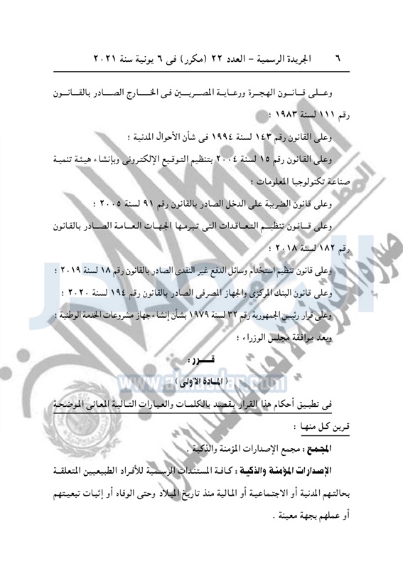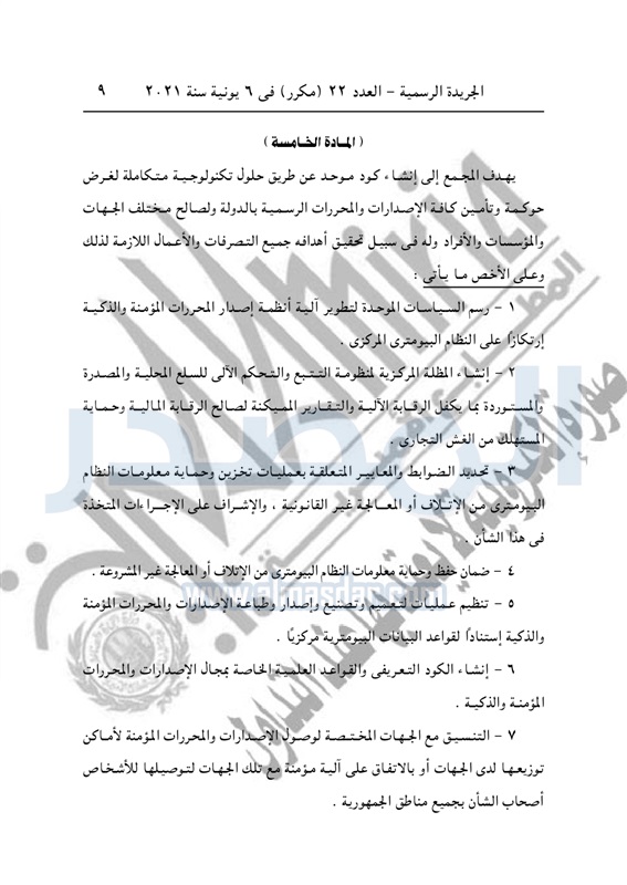 تكنولوجيا قرار جمهوري بإنشاء مجمع الإصدارات المؤمنة والذكية الأربعاء 09 يونيو 2021 - 12:12 م 6/9/2021 12:12:00 PM الرئيس السيسي المصدر- خاص طباعة شارك نشرت الجريدة الرسمية في العدد رقم 22 (مكرر)، فى 6 يونيو 2021، قرار رئيس جمهورية مصر العربية رقم 232 لسنة 2021، بشأن إنشاء مجمع الإصدارات المؤمنة والذكية.وفيما يلى نص القرار: طباعة شارك مجمع الإصدارات المؤمنة والذكية رئيس الجمهورية الرئيس السيسي الجريدة الرسمية تابع المصدر علي جوجل نيوز تطبيق نبض