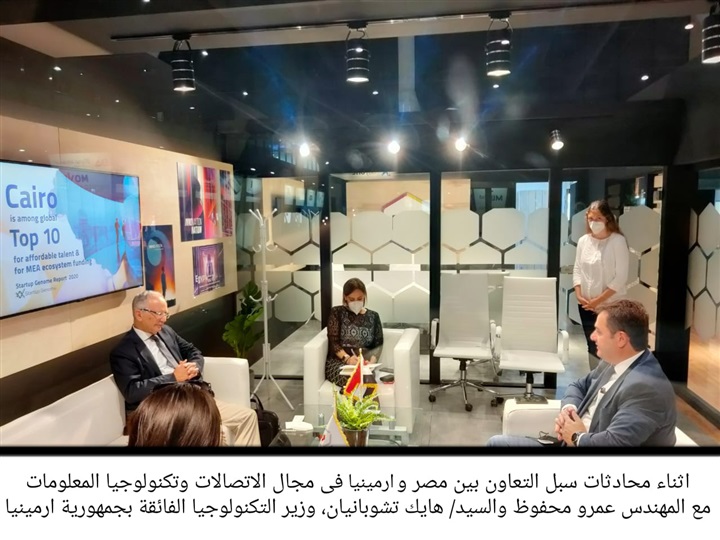 وعلى هامش المؤتمر، زار الجناح المصري، هايك تشوبانيان، وزير التكنولوجيا الفائقة بجمهورية أرمينيا وماجد الفلاسي قنصل دولة الإمارات العربية المتحدة في أسبانيا، وبحث الأول فرص الشراكة بين الجانب الأرميني والمصري في مجال التحول الرقمي وعرض التجربة الأرمينية في تنفيذ معامل تكنولوجية داخل مدارس العلوم والتكنولوجيا بأرمينيا، كما أعرب الثاني عن إعجابه بما وصلت اليه الشركات الناشئة المصرية ومدى قدرتها على جذب الاستثمارات الأجنبية.