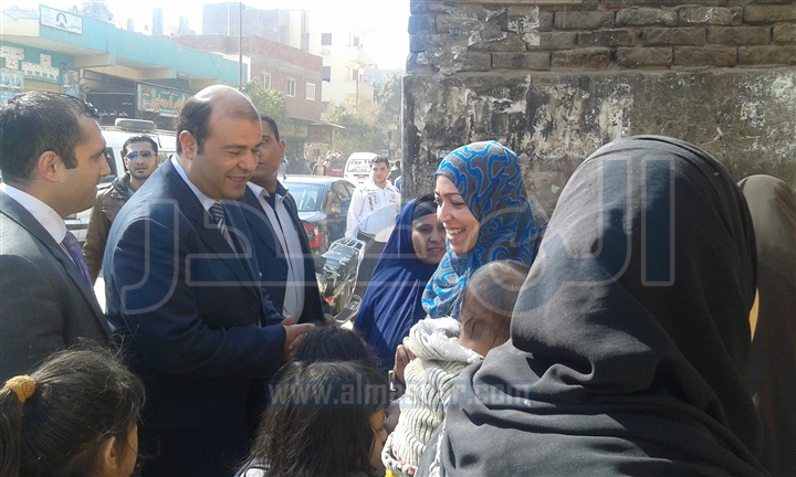 كما طمأن المواطنين الذين إلتقى بهم أنه جارى تحويل البطاقات الورقيه وهى عدة آلآف الى بطاقات تموينيه ذكيه.