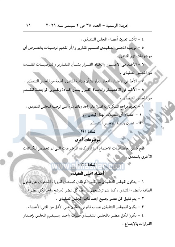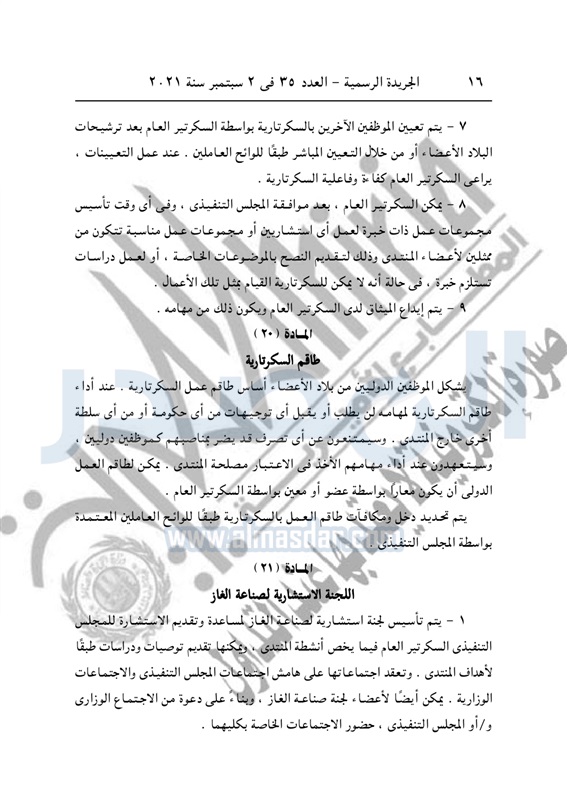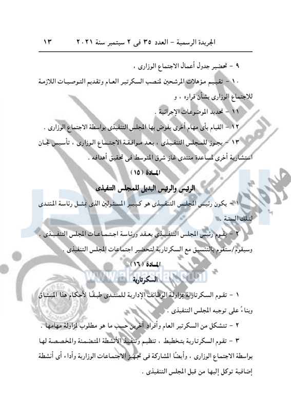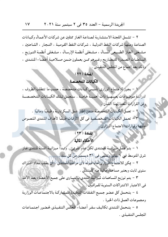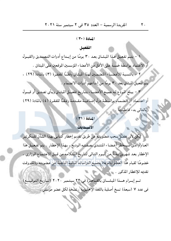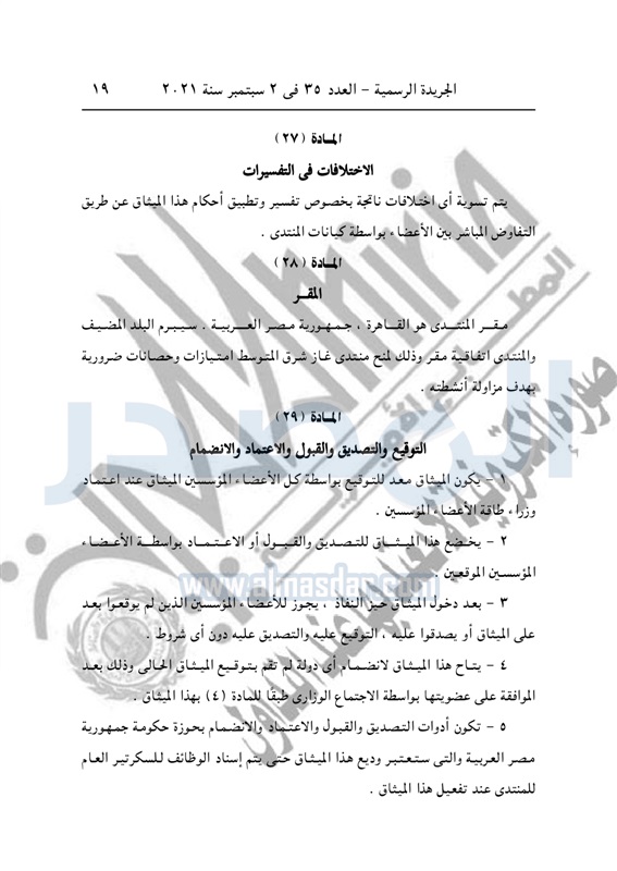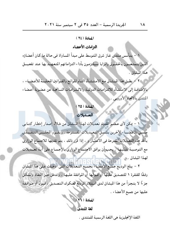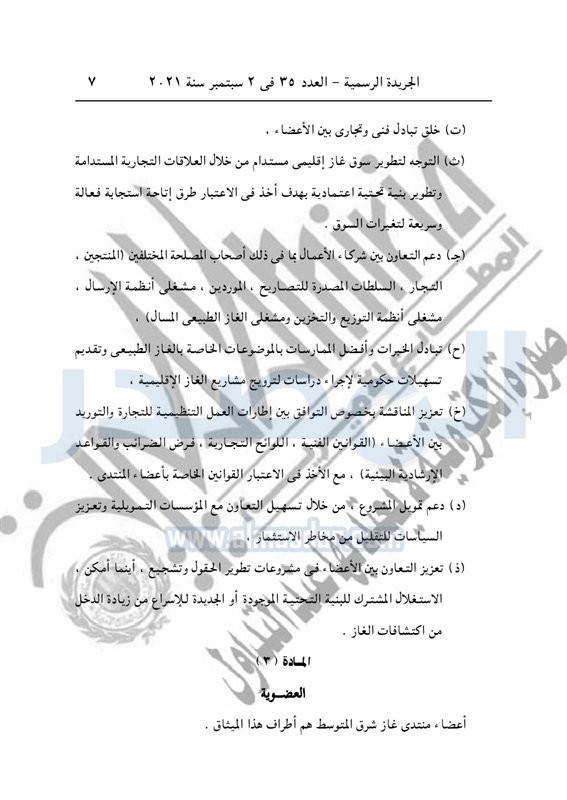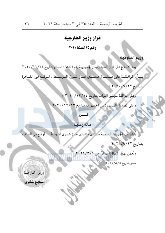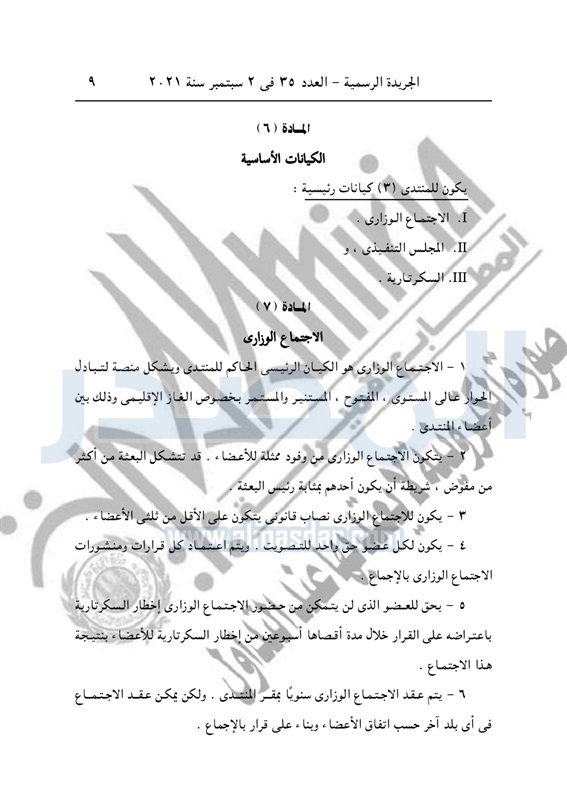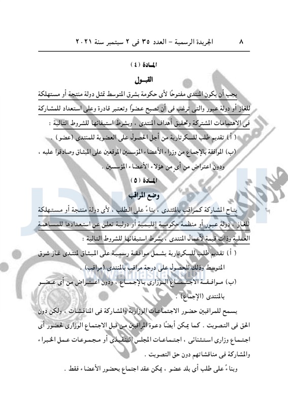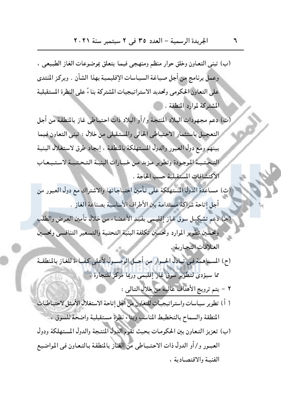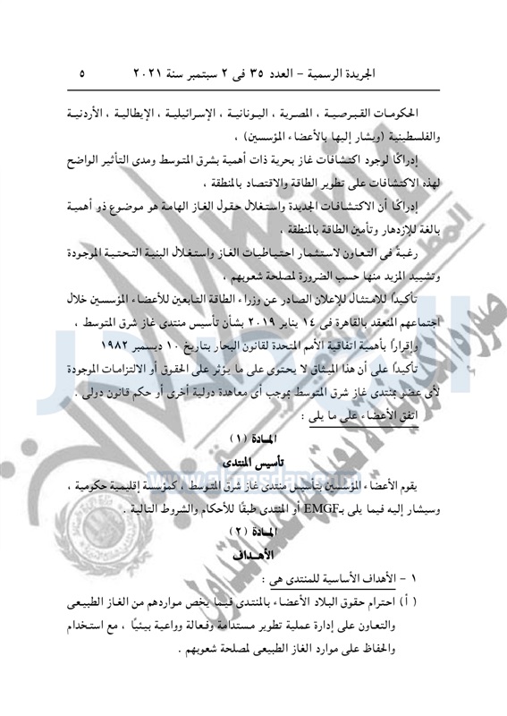 بترول وطاقة السيسي يوافق على ميثاق منتدى غاز شرق المتوسط الخميس 02 سبتمبر 2021 - 02:07 م 9/2/2021 2:07:04 PM الرئيس عبد الفتاح السيسي المصدر - خاص طباعة شارك نشرت الجريدة الرسمية في العدد رقم 35، بتاريخ 2 سبتمبر 2021، قرار رئيس الجمهورية رقم 644 لسنة 2020، بشأن الموافقة على ميثاق منتدى غاز شرق المتوسط الموقع فى القاهرة بتاريخ 22-9-2020. طباعة شارك منتدى شرق المتوسط رئيس الجمهورية الرئيس السيسي الجريدة الرسمية تابع المصدر علي جوجل نيوز تطبيق نبض