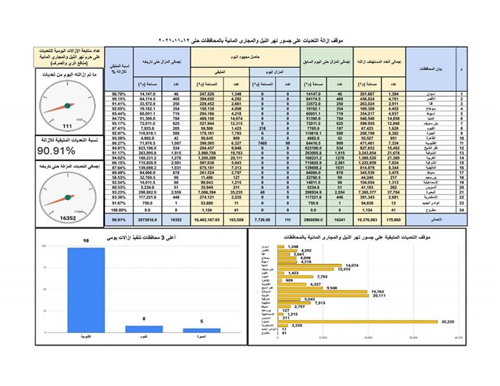 وفى محافظة دمياط تم تنفيذ عدد "30" قرار إزالة بقريتي البستان والعادية بمركز دمياط عبارة عن حالات ردم وتعديات متنوعة بمساحة 916.5 متر مربع، وتنفيذ عدد "14" قرار ازالة بالأقصر منهم "9" ازالات تمت بمعرفة المخالفين وعلى نفقتهم الخاصة.