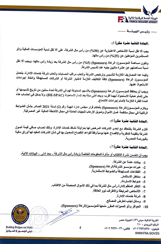 ◄ تعديل على قواعد قيد وشطب الأوراق المالية بالبورصة المصرية لتيسير قيد أسهم الشركات ذات غرض الاستحواذ (SPAC)