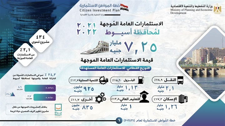 «التخطيط»: 434 مشروعًا في أسيوط بـ 7.25 مليار جنيه ضمن خطة 2021-2022