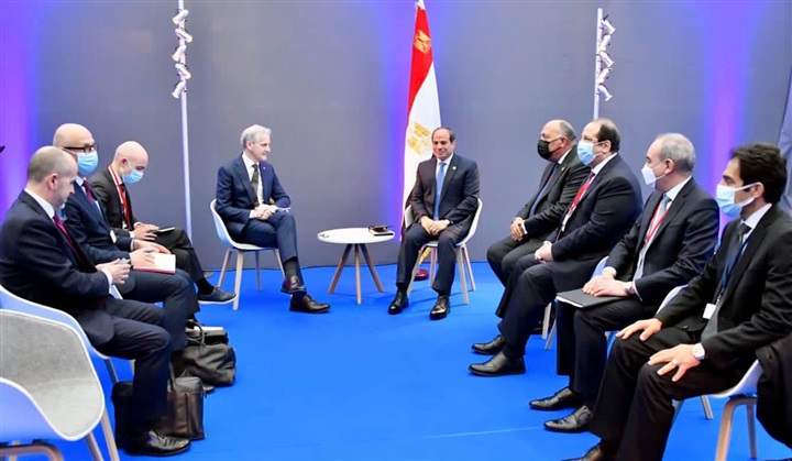 التقى الرئيس عبد الفتاح السيسي اليوم الجمعة 11 فبراير، في مدينة بريست الفرنسية مع يوناس جاهر ستوره، رئيس وزراء النرويج.