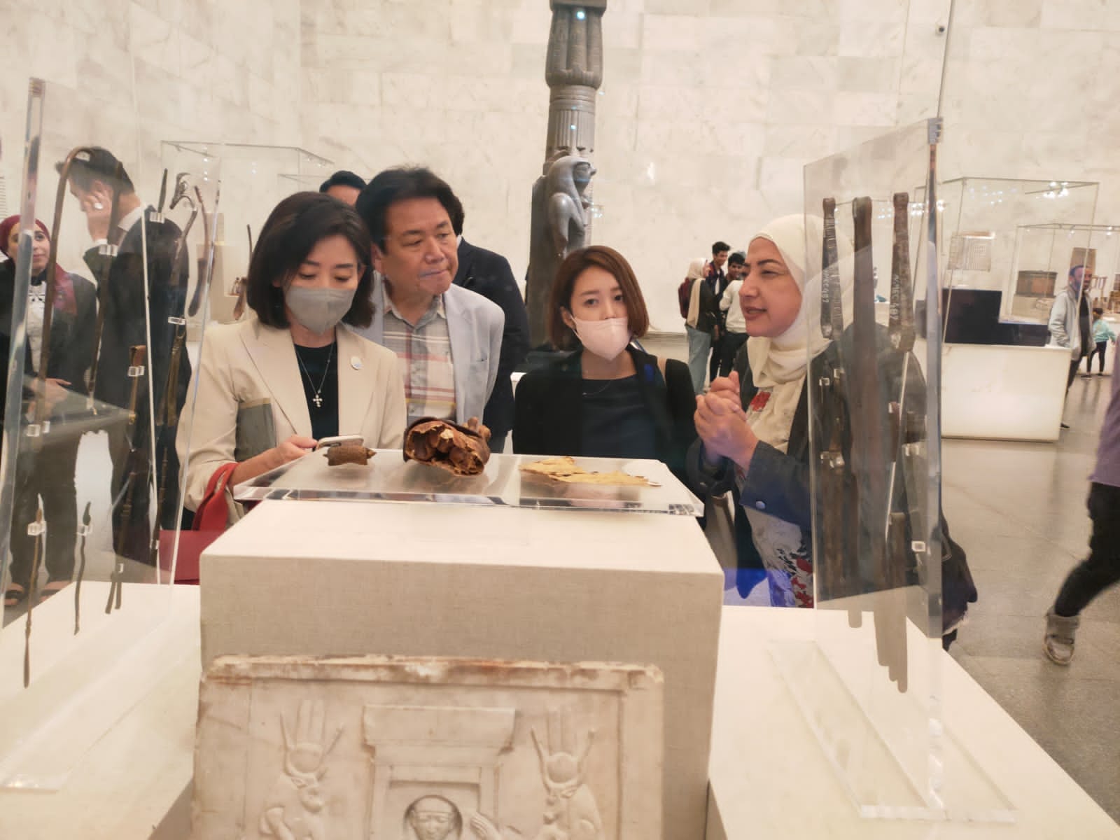 استقبل المتحف القومي للحضارة المصرية بالفسطاط، نا كيونغ وون المبعوث الخاص لرئيس الجمهورية الكورية، والوفد المرافق لها، وذلك في إطار سلسلة الزيارات الرسمية التي يشهدها المتحف.