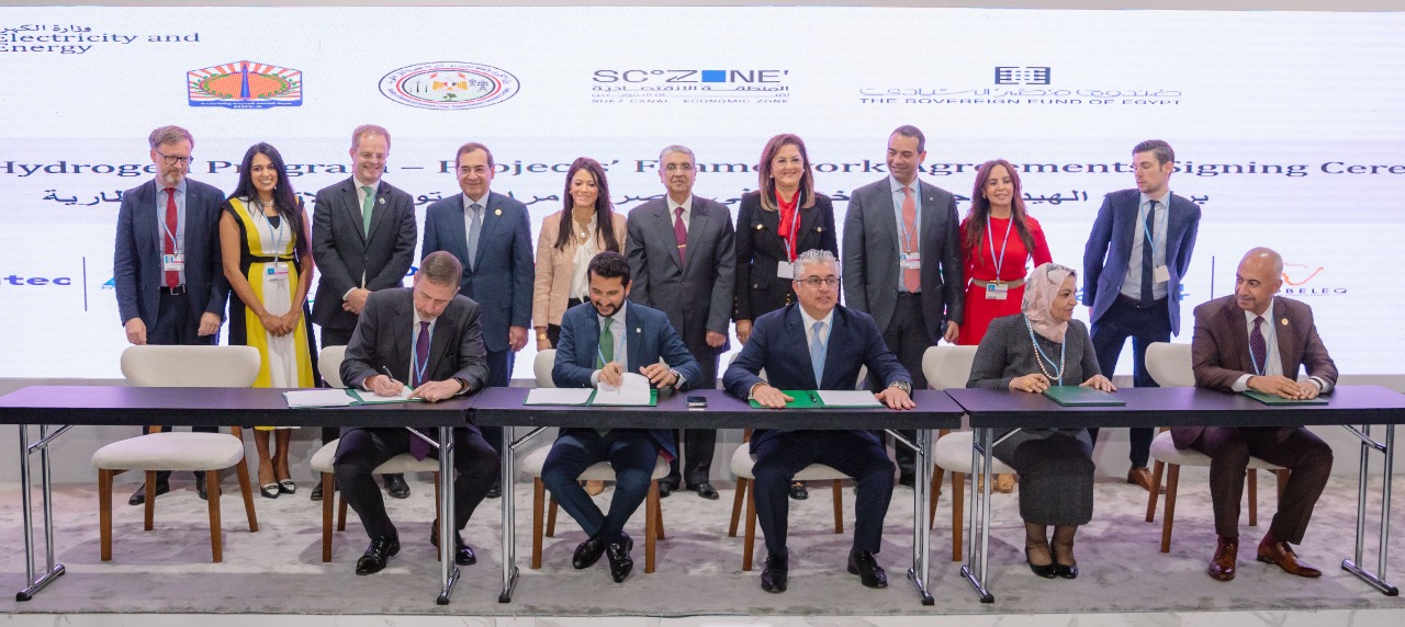 شهد الجناح المصري بقمة المناخ، اليوم الثلاثاء، مراسم توقيع 8 عقود لمشروعات الوقود الأخضر داخل المنطقة الاقتصادية لقناة السويس، والتي تم توقيع مذكرات تفاهم بشأنها بين المنطقة الاقتصادية لقناة السويس، وصندوق مصر السيادي، وهيئة الطاقة الجديدة والمتجددة، والشركة المصرية لنقل الكهرباء، مع كبرى الشركات والتحالفات العالمية الرائدة في مجال الطاقة النظيفة والمتجددة، حيث تحولت مذكرات التفاهم إلى عقود فعلية تدخل حيز التنفيذ بعد الانتهاء من دراسات الجدوى القانونية والفنية والمالية والتي تم التوافق عليها بين جميع الأطراف.