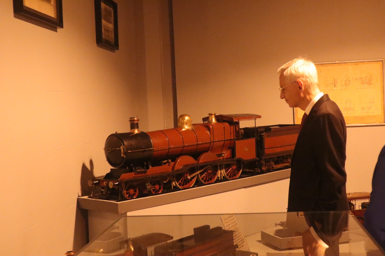 من جانبه أكد السفير الفرنسى على شكره وسعادته لهذا التعاون المثمر فى مجال النقل السككى، كما قام السفير الوفد المرافق له بزيارة لمتحف السكة الحديد، حيث أشاد بمحتويات المتحف والذى يوضح مراحل تطوير السكة الحديد بمصر.