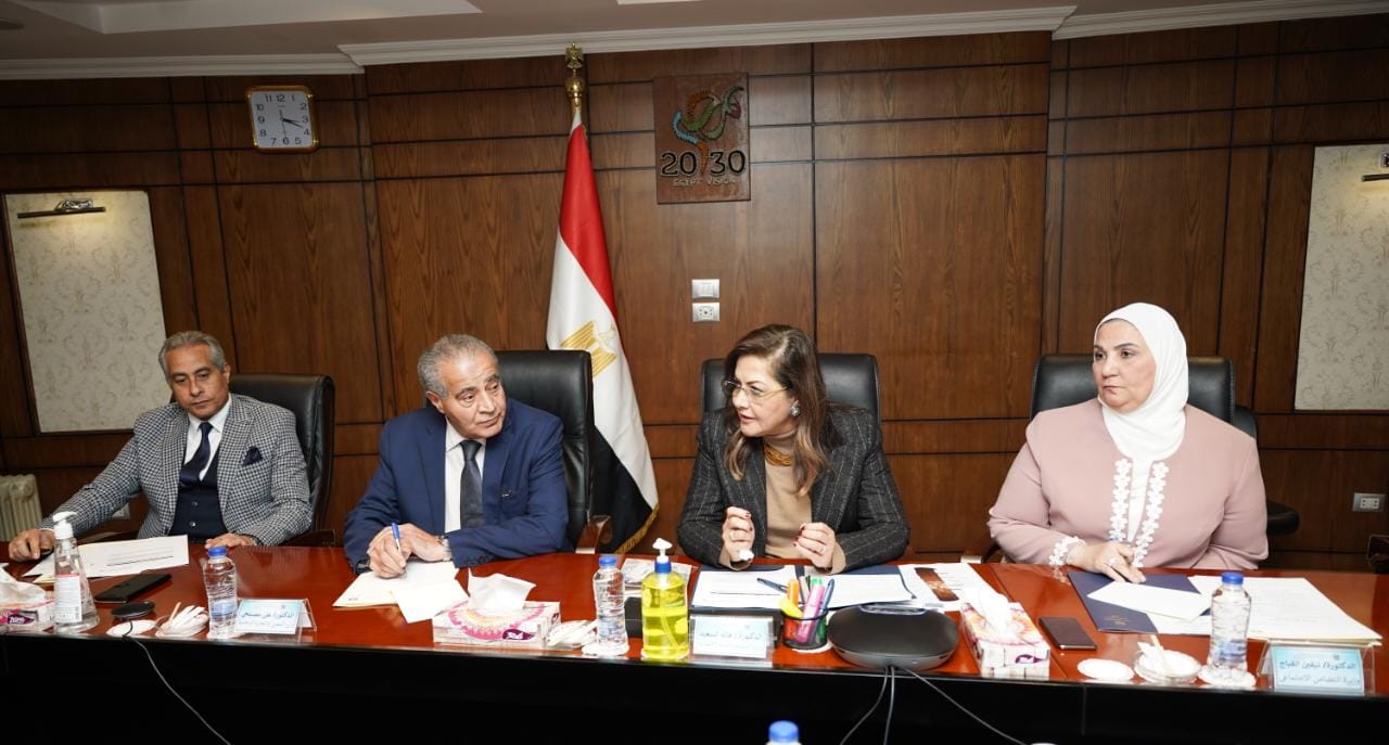 وشهد الاجتماع حضور كل من الدكتور علي مصيلحي، وزير التموين والتجارة الداخلية، ونيفين القباج، وزيرة التضامن الاجتماعي، والدكتور حسن شحاته، وزير القوى العاملة، واللواء خيرت بركات، رئيس الجهاز المركزي للتعبئة العامة والإحصاء، واللواء جمال عوض، رئيس الهيئة القومية للتأمين الاجتماعي.