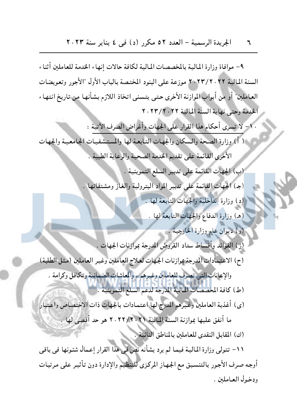نشرت الجريدة الرسمية في العدد 52 مكرر "د" بتاريخ 4 يناير 2023، قرار رئيس مجلس الوزراء رقم 69 لسنة 2023، بشأن ترشيد الإنفاق العام بالجهات الداخلة في الموازنة العامة للدولة والهيئات العامة الاقتصادية في ظل الأزمة الاقتصادية الحالية.