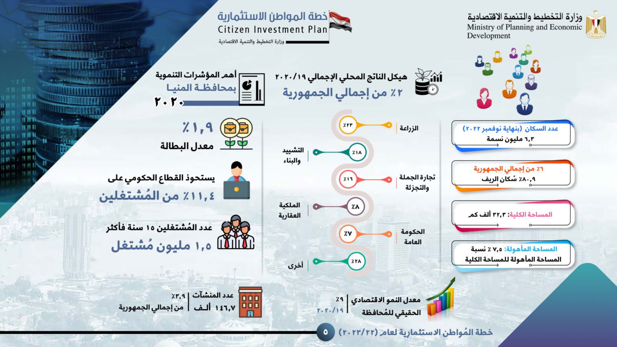 التخطيط: 4.4 مليار جنيه استثمارات 324 مشروعًا تنمويًا بالمنيا في 2022-2023