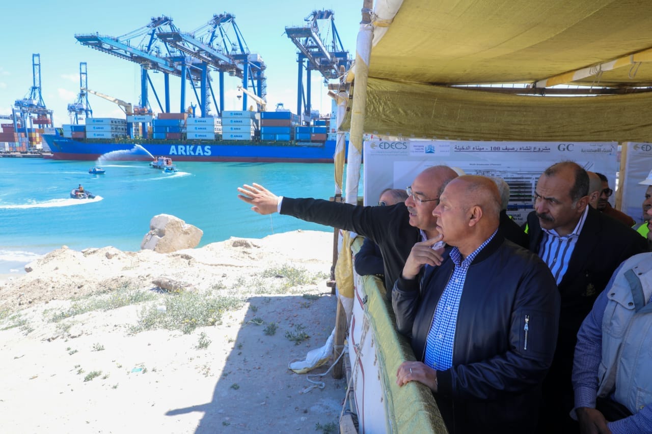 كما تفقد الوزير مشروعي الحاجزين الغربي والشمالي ضمن خطة إنشاء خمسة حواجز امواج جديدة في إطار مشروع ميناء الأسكندرية الكبير وحيث يصل طول الحاجز الشمالي إلى 2185 م وطول الحاجز الغربي 1380 م كما تم متابعة مشروع إنشاء محطة الصب الجاف بميناء الدخيلة بقيمة إجمالية 1.6 مليار جنيه وحيث يتم إنشاء رصيف بطول 1150 متر وعمق 15م وظهير خلفى 300 ألف م2 وقادر على إستقبال عدد 4 سفن بطول 240 م ومن المخطط أن يضيف طاقة إستيعابية تقديرية من 6-7 مليون طن إضافة / السنة وتفقد الفريق مهندس وزير النقل مشروع إنشاء منطقة لوجيستية على مساحة 273 فدان تقريبا بقيمة تقريبية مليار جنيه والذي يهدف إلى إنشاء منطقة لوجيستية متكاملة وموانئ نهرية لخدمة ميناء الأسكندرية.