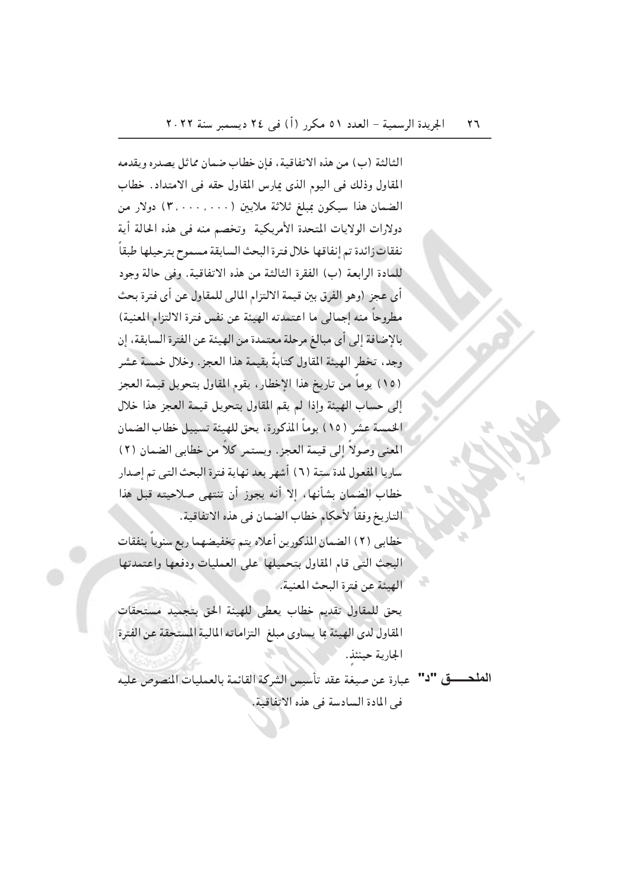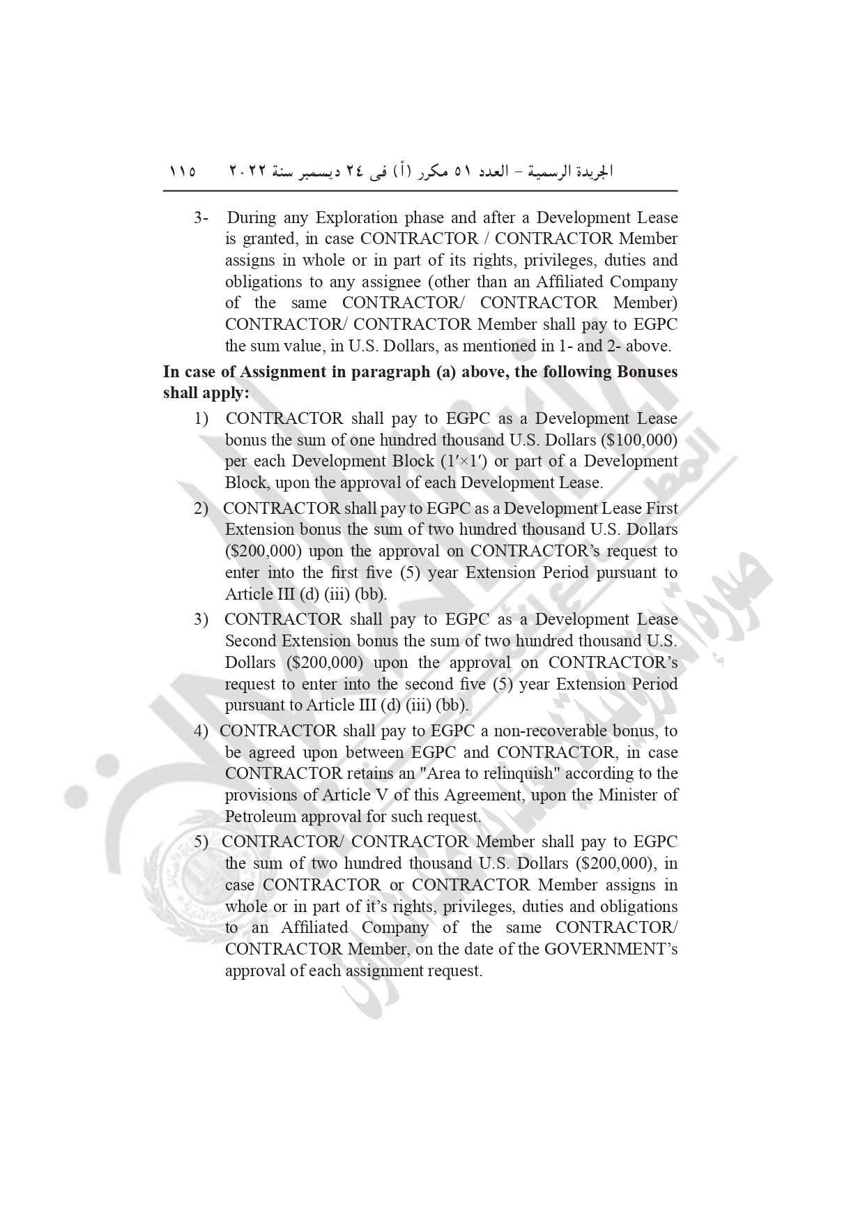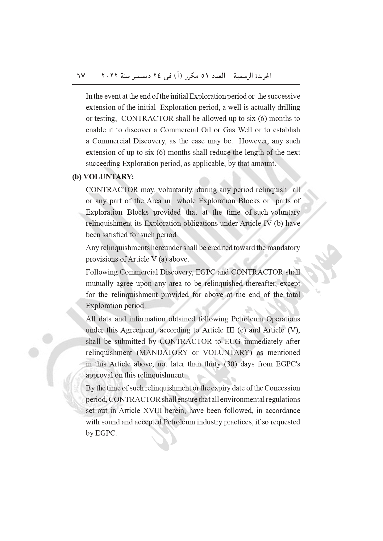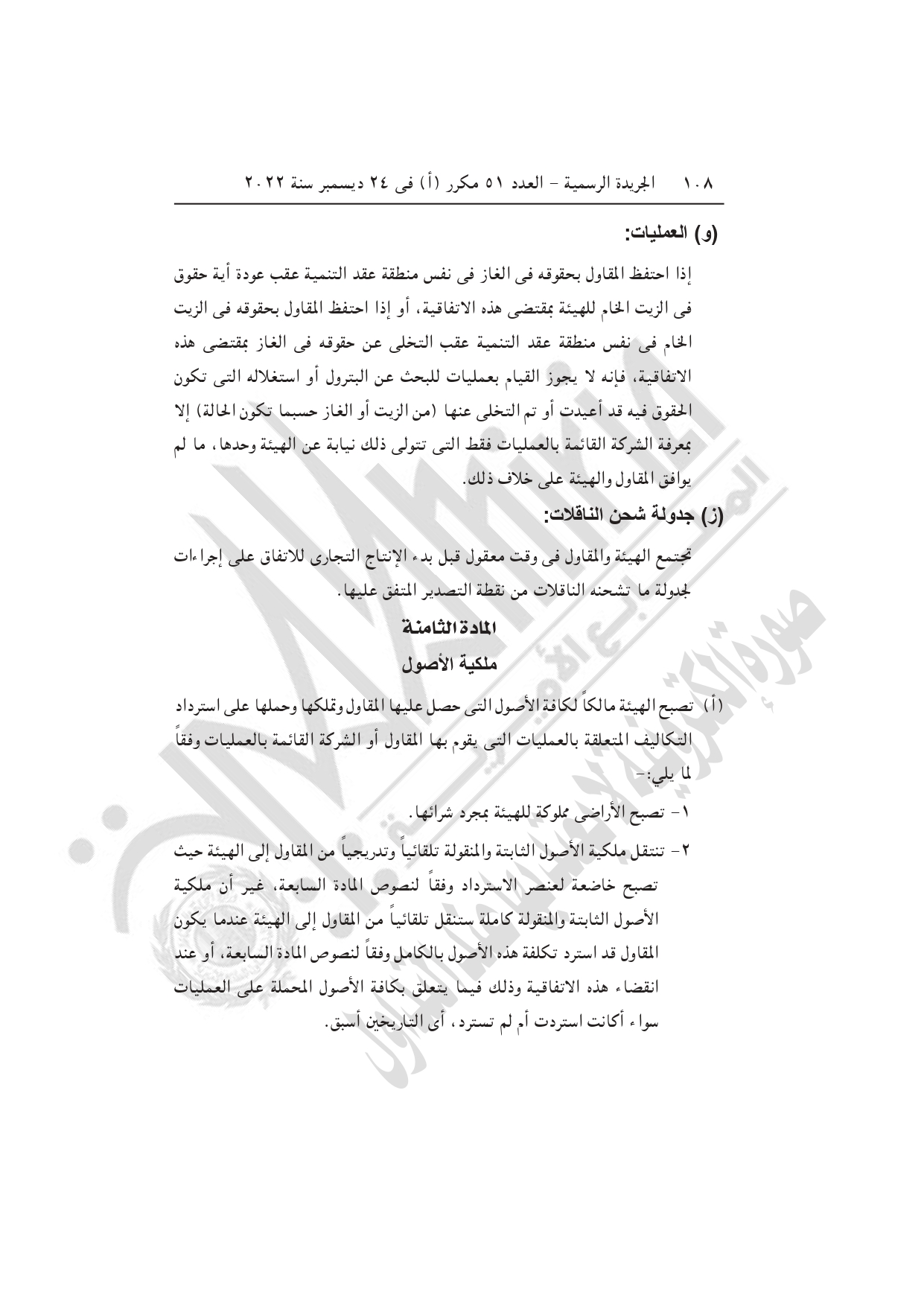 نشرت الجريدة الرسمية في العدد 52 مكرر "أ"، بتاريخ 24 ديسمبر 2022، قرار رئيس جمهورية مصر العربية بالتصديق على القانون رقم 169 لسنة 2022، بشأن أن يرخص لوزير البترول والثروة المعدنية فى التعاقد مع الهيئة المصرية العامة للبترول والشركة الوطنية المصرية لاستكشاف وتنمية البترول للبحث عن البترول واستغلاله فى منطقة جنوب رأس قطارة بالصحراء الغربية "ج.م.ع"، وذلك وفقاً لأحكام الاتفاقية المرافقة والخريطة الملحقة بها.