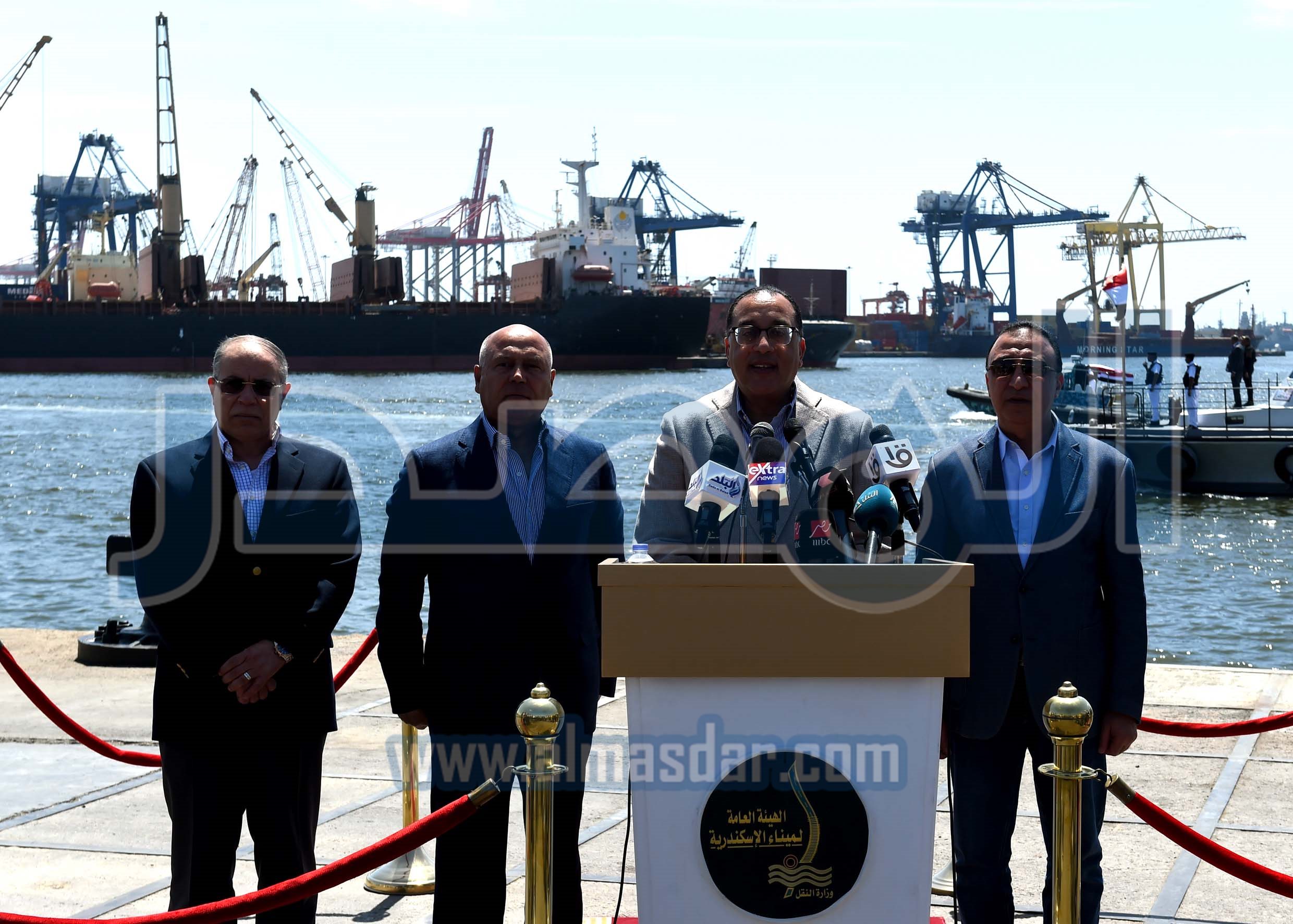 وكان في استقبال رئيس مجلس الوزراء الفريق مهندس كامل الوزير، وزير النقل، واللواء بحري نهاد شاهين، رئيس الهيئة العامة لميناء الإسكندرية، واللواء محمد الشريف، محافظ الإسكندرية، ومسئولو الجهات المعنية.
