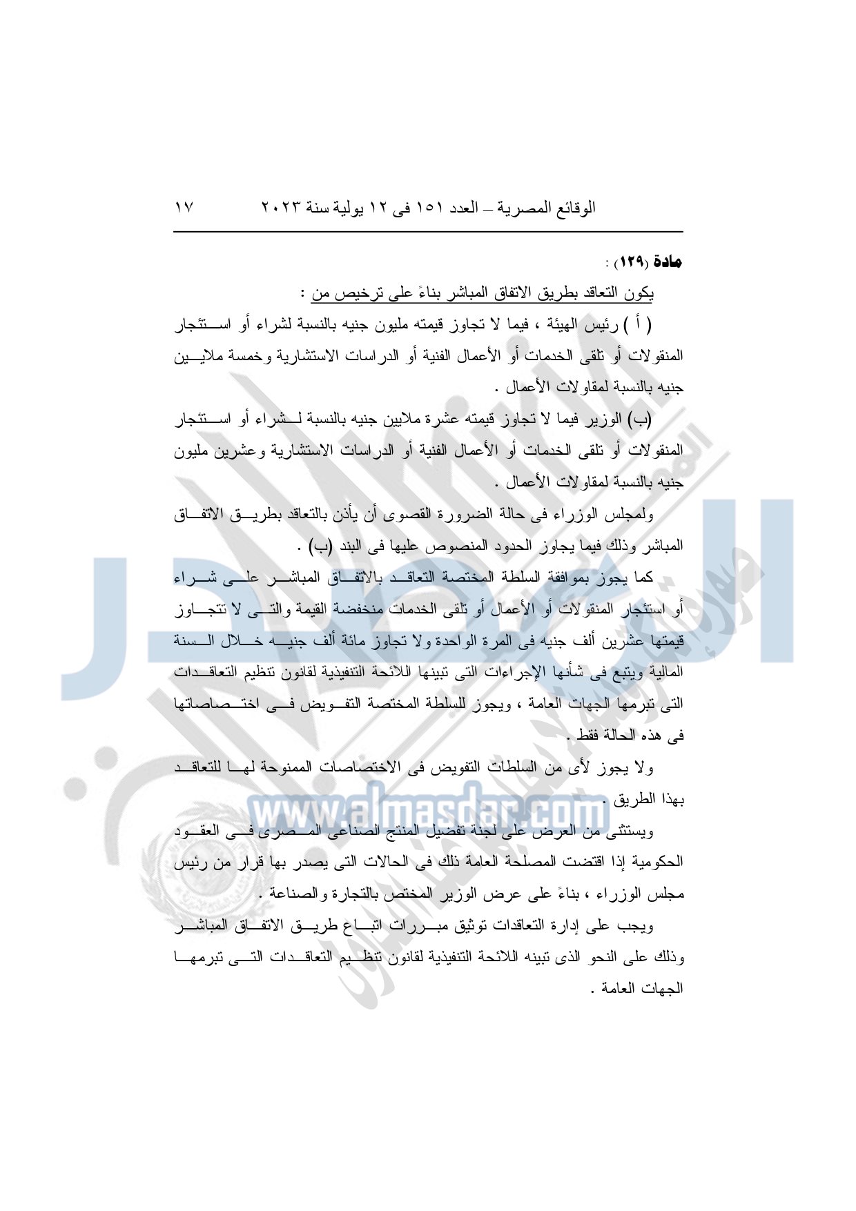 يستبدل بنصوص المواد "4"، "24 الفقرتين الثانية والرابعة"، "25"، "26 الفقرتين الأولى والثانية"، "29"، "32"، "33 الفقرة الثامنة"، "34 الفقرتين الثانية والثالثة"، "41"، "42"، "50"، "52"، "56"، "58"، "61"، "77 فقرة أخيرة"، "82 الفقرة الأولى - بند 1"، "93"، "94"، "95"، "96 الفقرة الأولى"، "102 الفقرة الثالثة"، "121 الفقرة الأخيرة"، "122 الفقرة الأخيرة"، "127 الفقرتين الرابعة والخامسة"، "128"، "129"، "130"، "131 الفقرة الأخيرة"، "143 الفقرة الأخيرة"، "144 الفقرة الأخيرة"، "149 الفقرة الثانية"، "152"، "157"، "162 الفقرة الأخيرة"، "174"، "175" من لائحة تنظيم التعاقدات التى تبرمها الهيئة القومية لسكك حديد مصر المشار إليها، النصوص الآتية:
