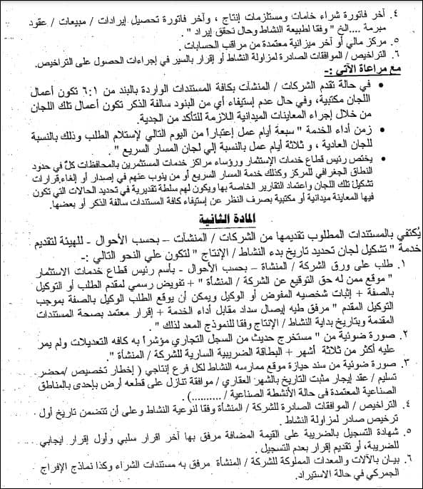 أصدرت الهيئة العامة للاستثمار والمناطق الحرة، قراراً بتخفيض عدد المستندات المطلوبة من الشركات للحصول على خدمتي تشكيل لجان تحديد الموقف التنفيذي، وبدء النشاط، تنفيذًا لتوجيهات المجلس الأعلى للاستثمار برئاسة الرئيس عبد الفتاح السيسي بتبسيط وتيسير كافة الإجراءات المتعلقة بالاستثمار.