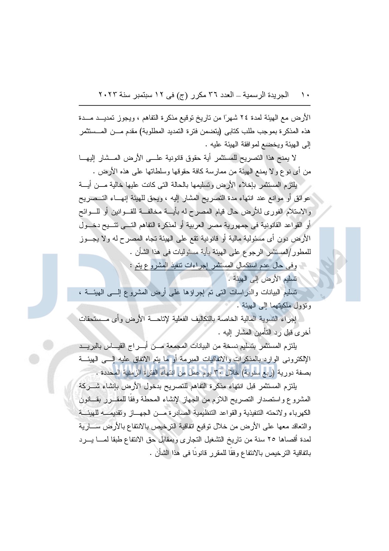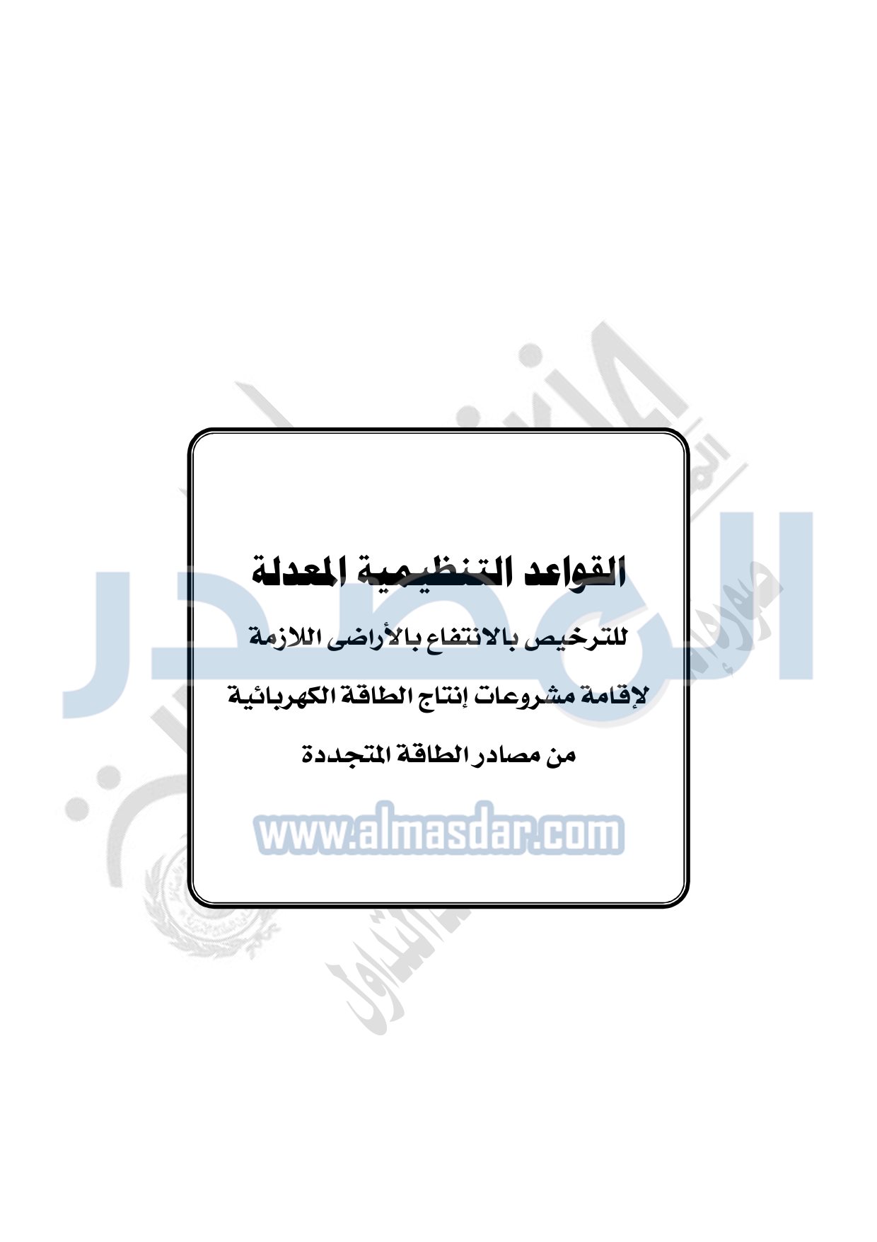 وعلى قرار مجلس الوزراء بجلسته المنعقدة بتاريخ 1-4-2015 بالموافقة على القواعـد التنظيمية للترخيص بالانتفاع بالأراضي اللازمة لإقامة مشروعات إنتاج الطاقة الكهربائية من مصادر الطاقة المتجددة؛