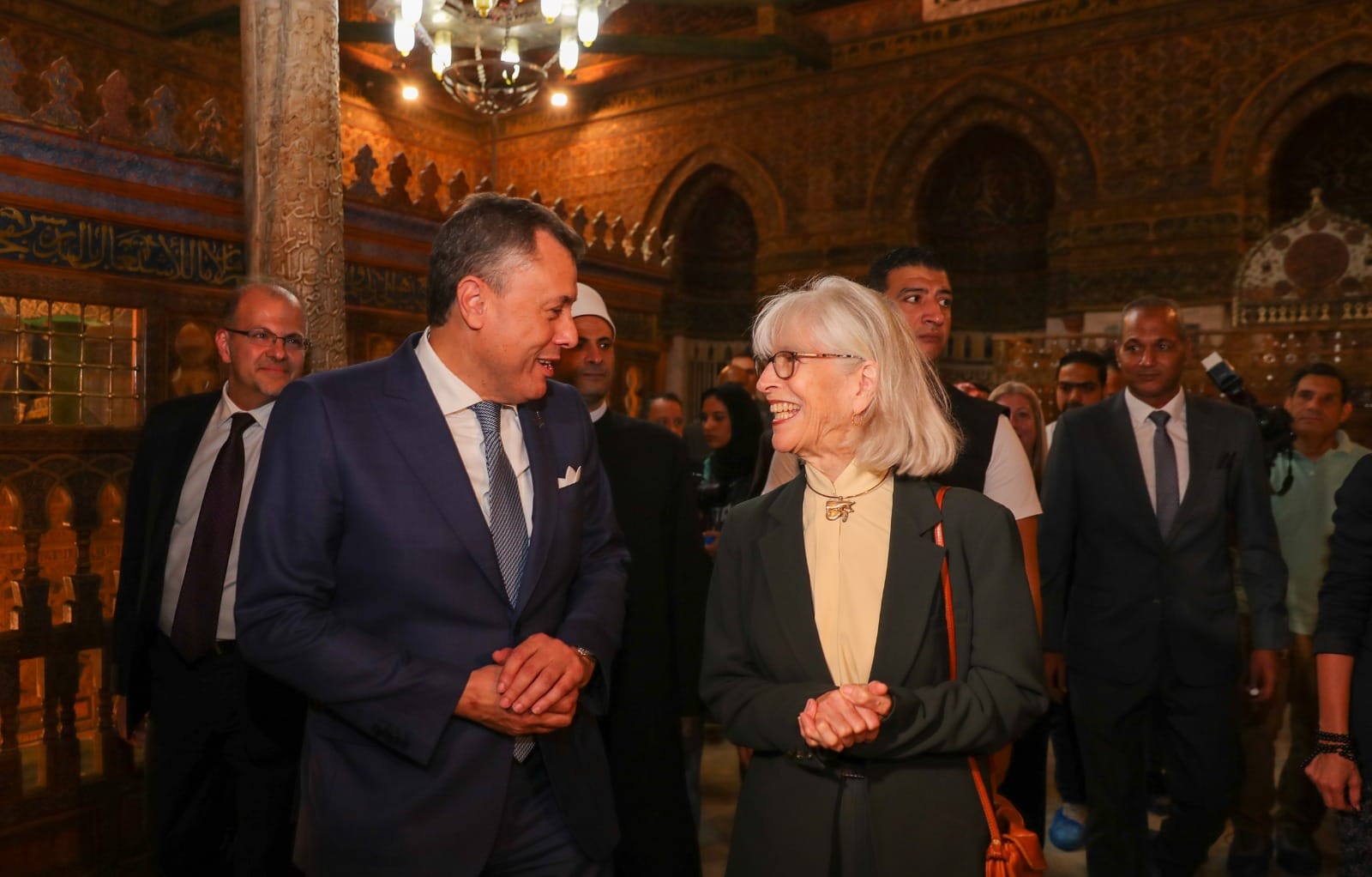 كما شاهد الوزير والسفيرة فيلما تسجيلياً عن تاريخ جبانة الإمام الشافعي ومراحل أعمال الترميم والاكتشافات الأثرية بالمنطقة.