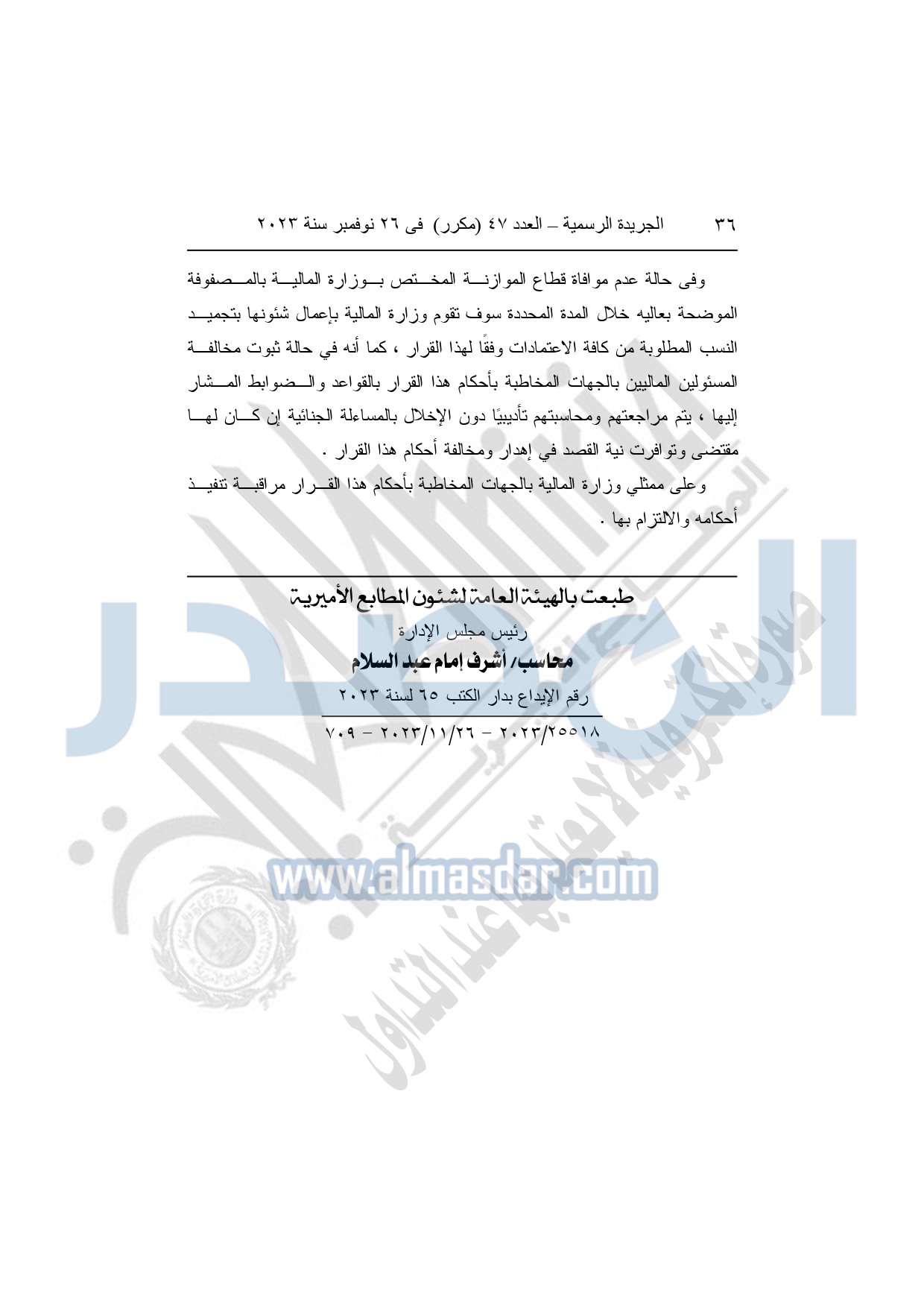 يصدر وزير المالية ما يلزم من قواعد لتنفيذ أحكام هذا القرار.