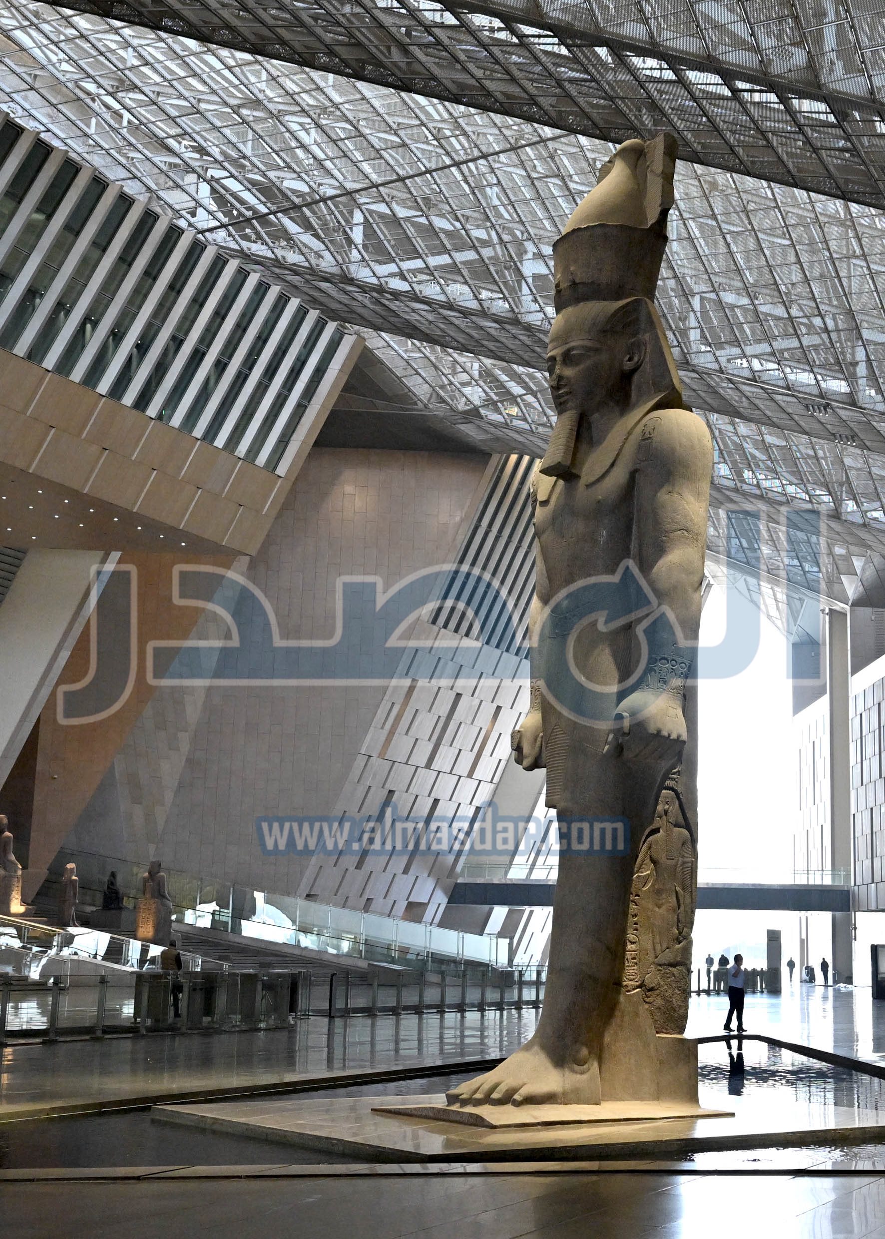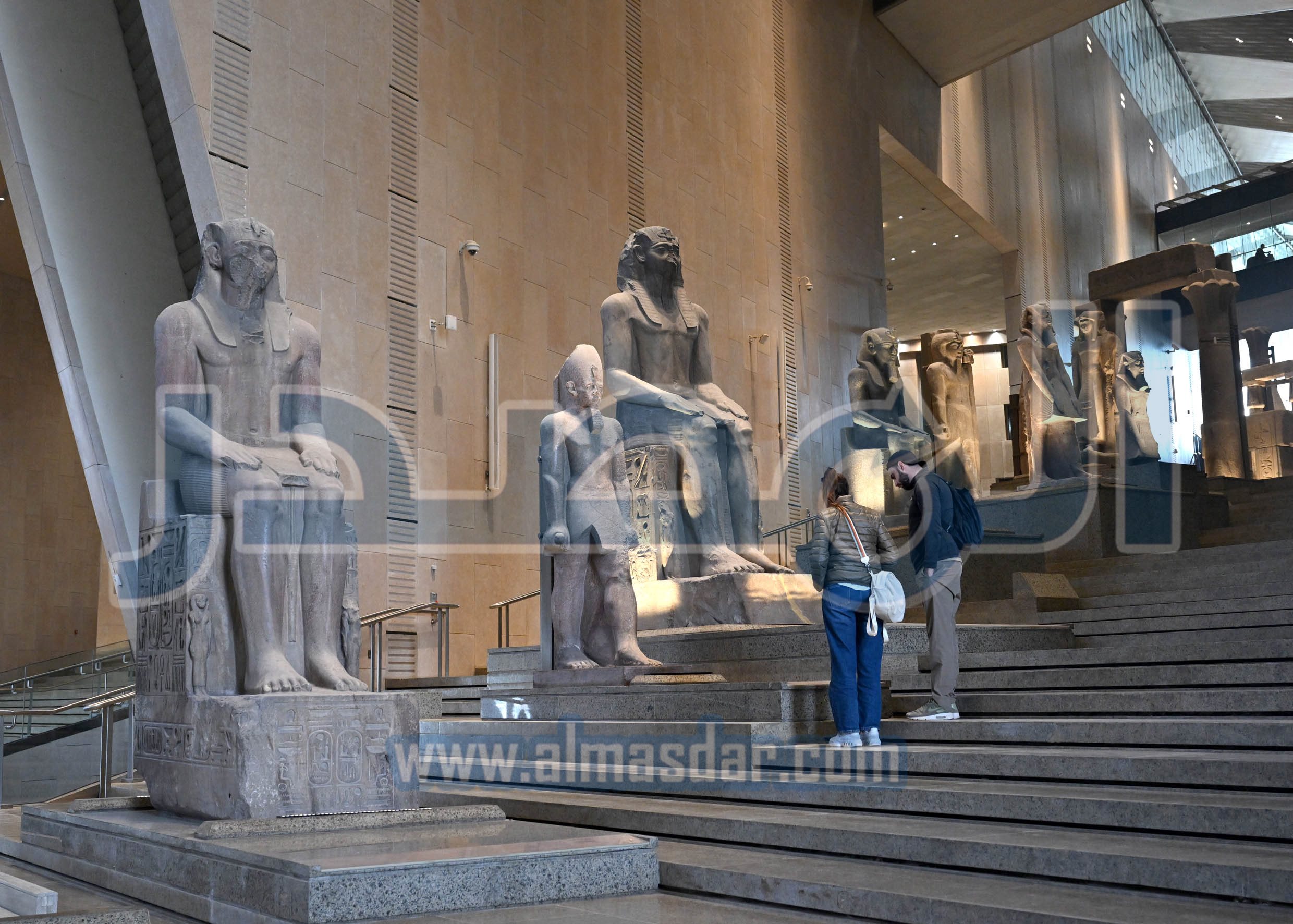 وأوضح الوزير، أن الدرج العظيم يعدُ من أكثر الأماكن تفرداً بالمتحف والتي تميزه عن باقي المتاحف العالمية، حيث يُعرض عليه مجموعة من أفضل وأضخم القطع الأثرية التي تجسد روائع فن النحت بمصر القديمة، والتي تبدأ من عصر الدولة القديمة وحتى العصر اليوناني الروماني، وينتهي الدرج العظيم بمشهد بانورامي جميل يُظهر أهرامات الجيزة الخالدة.