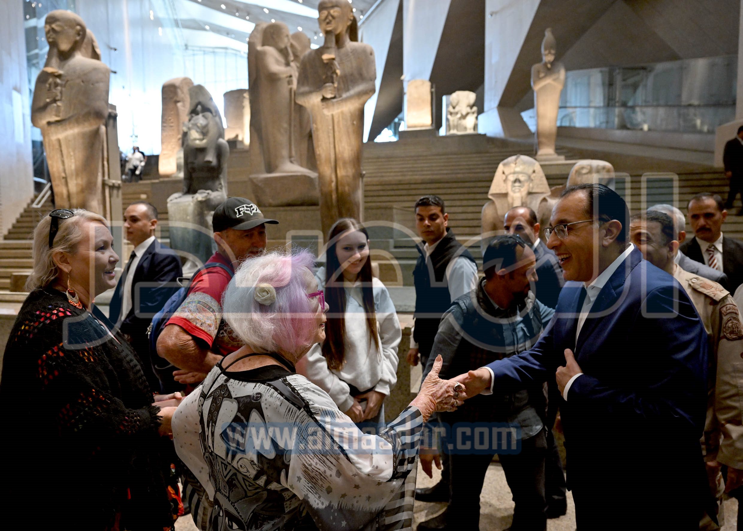 وخلال جولته بالمتحف، التقى رئيس الوزراء فوجاً سياحياً استرالياً، وأدار حواراً معهم للتعرف على انطباعات تجربة زيارتهم للمتحف المصري الكبير، ولمصر بشكل عام، حيث أكدوا أن هذه هي الزيارة الرابعة لهم لمصر، وانهم مستمتعون بالأجواء والطقس بها، كما أنهم منبهرون بما يضُمه المتحف من مُقتنيات وقطع أثرية مهمة، حيث أكدت إحدى السائحات أن هذه هي المرة الرابعة لها في مصر، ومصر تجرى في دمها.