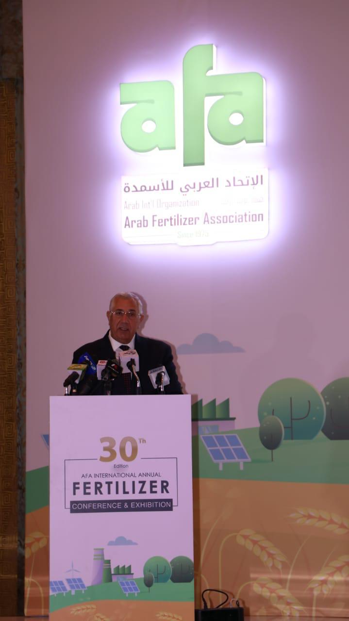 جاء ذلك خلال كلمة وزير الزراعة، التي ألقاها نيابة عن الدكتور مصطفى مدبولى رئيس مجلس الوزراء، أمام الجلسة الافتتاحية للمؤتمر الدولي السنوي للأسمدة في نسخته الثلاثين للأتحاد العربي للأسمدة تحت شعار "المغذيات الزراعية لتأمين الغذاء واستدامة البيئة".