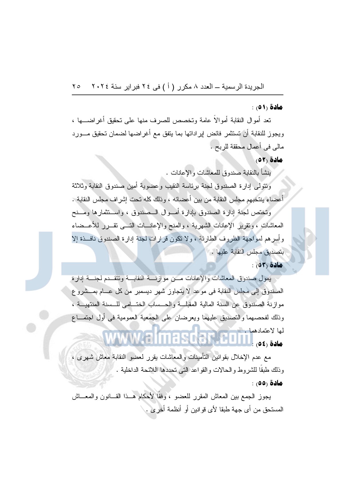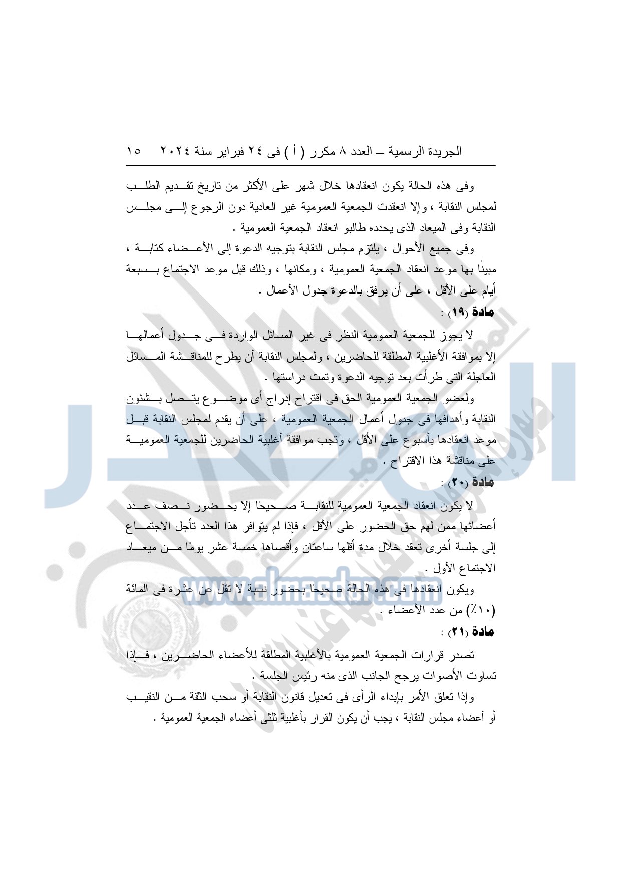 تباشر اللجنة المؤقتة المشار إليها في المادة الثانية من هذا القانون أعمالها بمجرد نشر قرار تشكيلها بالجريدة الرسمية، وتضع لائحة تنظم طريقة عملها وإجراءات اتخاذ قراراتها، وتنتهى مهمتها بانتخاب مجلس للنقابة، على أن يتم ذلك خلال ستة أشهر على الأكثر من تاريخ أول اجتماع لها.