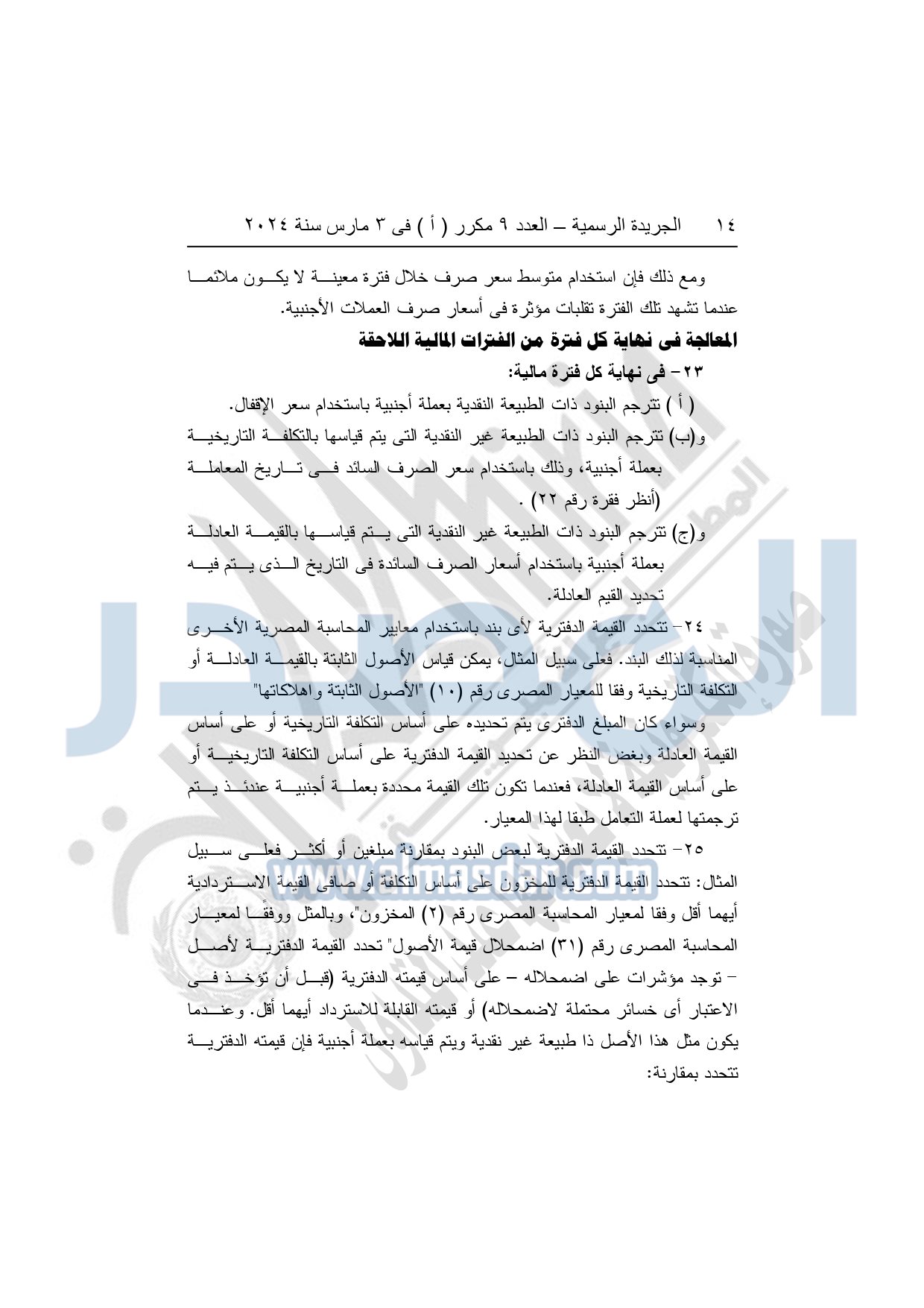 نشرت الجريدة الرسمية في 9 مكرر "أ" بتاريخ 3 مارس 2024، قرار رئيس مجلس الوزراء الدكتور مصطفى مدبولي رقم 636 لسنة 2024 بشأن تعديل بعض أحكام معايير المحاسبة المصرية.