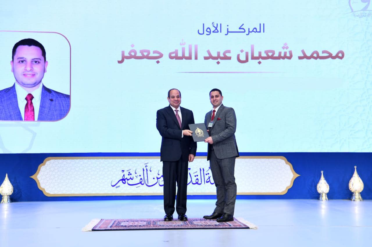 وفاز بالمركز الأول فى الفرع الأول "حفظ القرآن الكريم مع تجويده وتفسيره وفهم مقاصده العامة لغير الأئمة والخطباء وأعضاء هيئة التدريس ومعاونيهم" محمد شعبان عبد الله جعفر وحصل على جائزة قدرها مليون جنيه، فيما جاء في المركز الثاني في الفرع الأول أسماء يونس ابراهيم الباز والتي فازت بجائزة مالية قدرها 500 ألف جنيه .