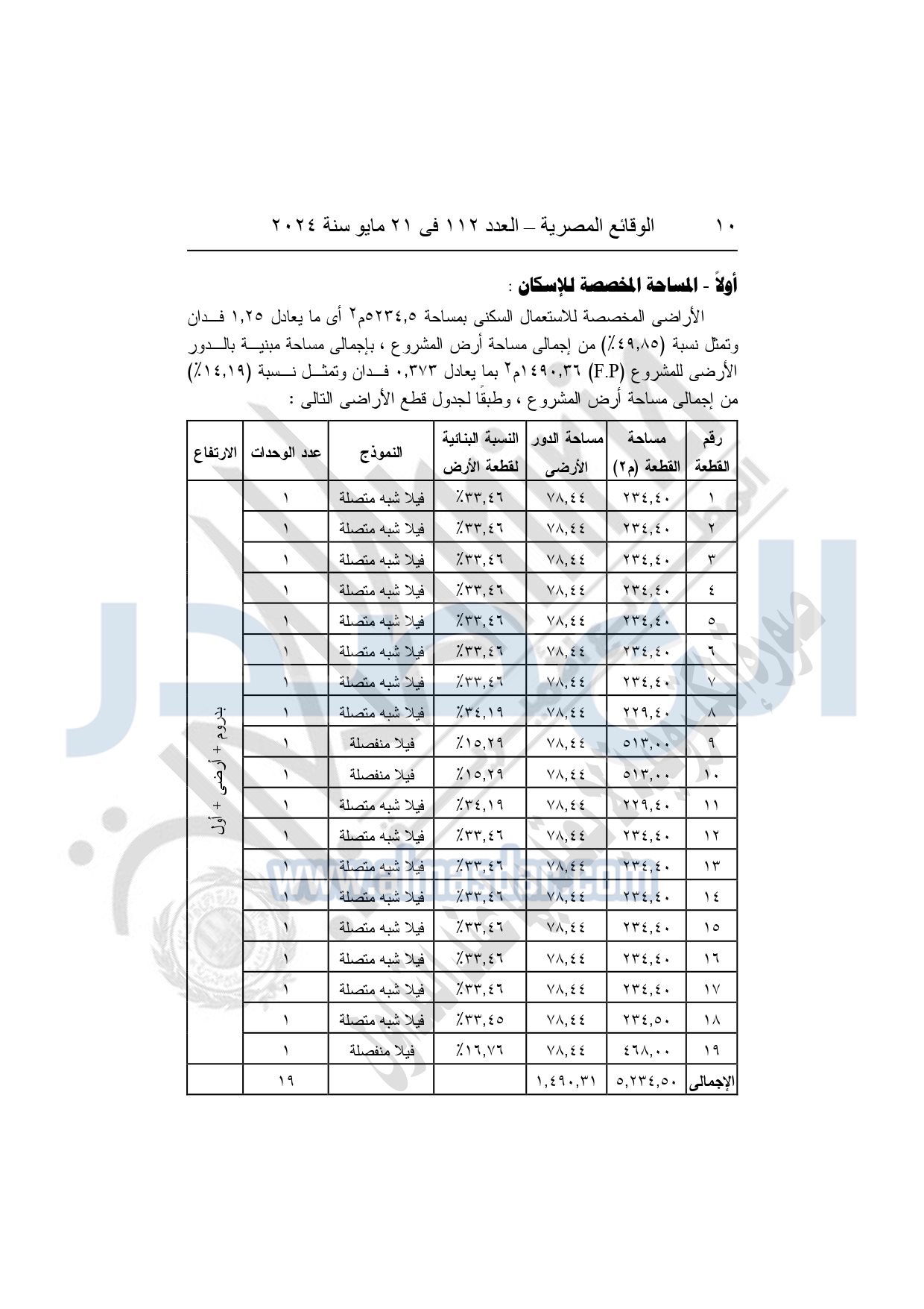 وأوضحت الوقائع المصرية، أن المادة الأولى تنص على اعتماد تخطيط وتقسيم قطعة الأرض رقم "11/ أ /2" بمساحة 2.5 فدان بما يعادل 10500 م2 "عشرة آلاف وخمسمائة متر مربع" الواقعة بالحوض رقم "11" بالحزام الأخضر بمدينة 6 أكتوبر المخصصة لـ محمد العربي محمد موسى على - عماد عبد الوهاب على تركى - نهى عماد عبد الوهاب على تركي - لبني عماد عبد الوهاب على تركى لإقامة مشروع سكنى بمقابل عينى وخدمات تجارية بعلاوة سعرية إضافية لخدمة قاطنى المشروع فقط ، وذلك طبقا للحدود الموضحة عى الخريطة المرفقة بهذا القرار وعقد التخصيص المبرم بتاريخ 17-11-2019 والتى تعتبر جميعها مع القرار.