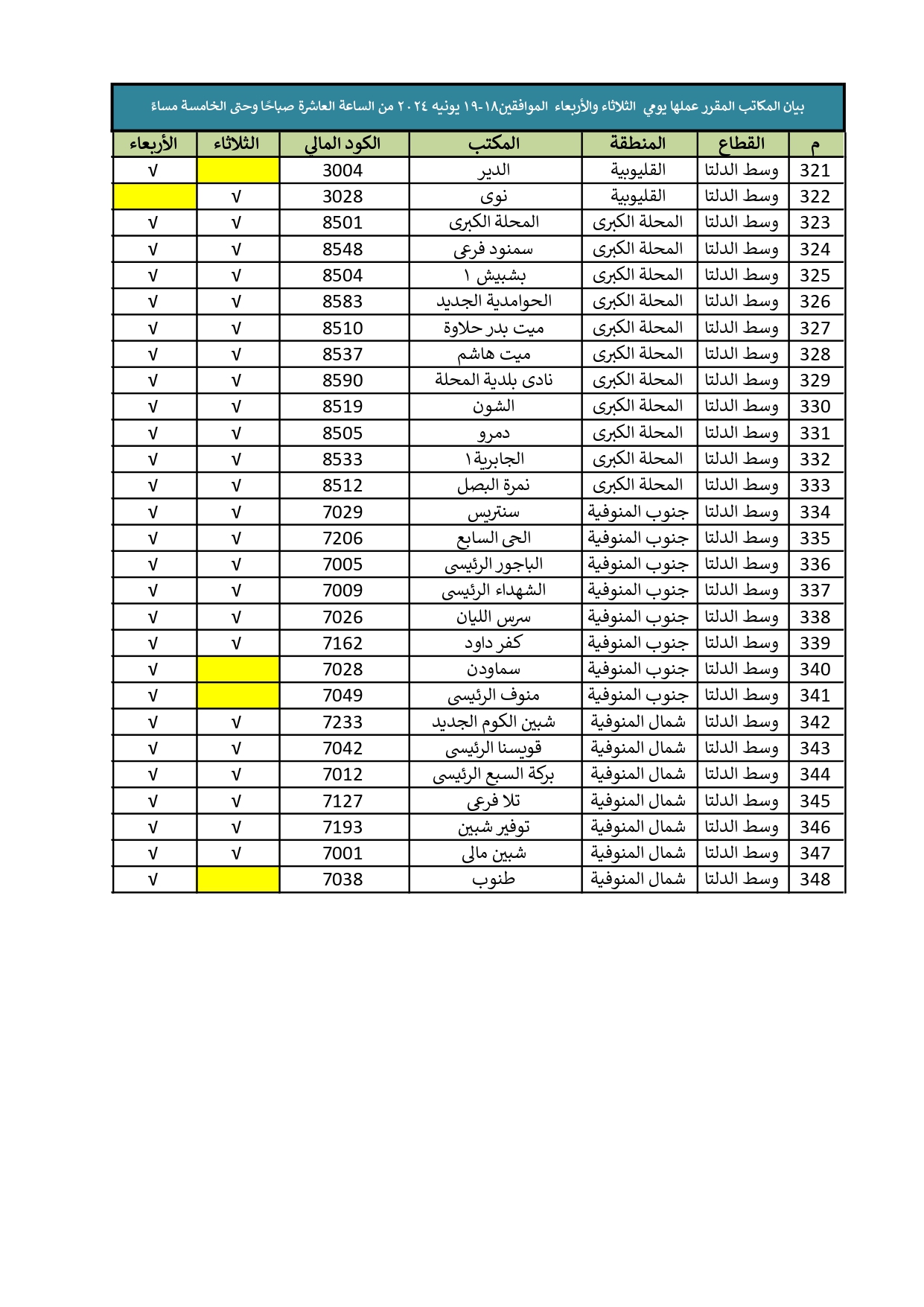 وقررت الهيئة، تشغيل المكاتب الرئيسية بجميع المحافظات والمقدر عددها 348 مكتب بريد منتشرين على مستوى الجمهورية يومي "الثلاثاء والأربعاء" الموافقين 18 و19 يونيو.