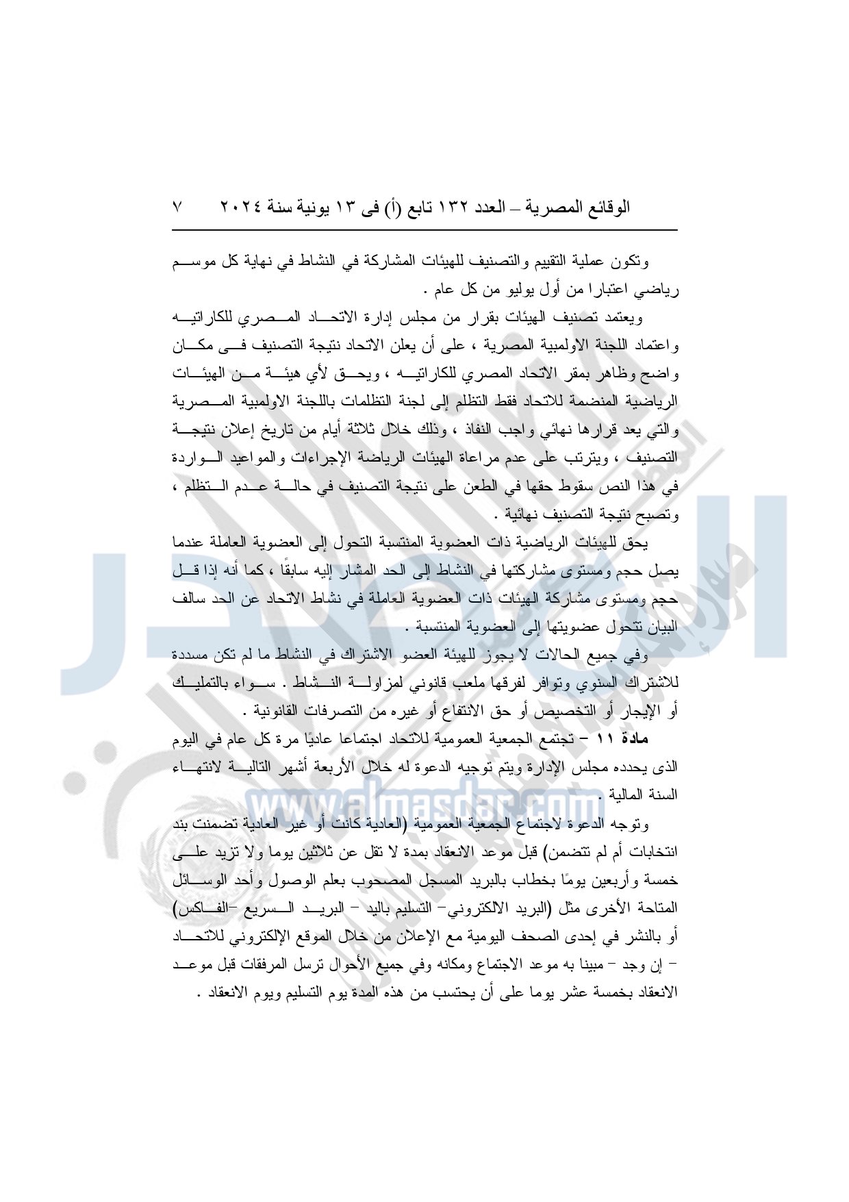 نشرت الوقائع المصرية في العدد 132 تابع "أ"، بتاريخ 13 يونية 2024، قرار اللجنة الأولمبية المصرية رقم 2 لسنة 2024، بشأن الموافقة على تعديل بعض مواد لائحة النظام الأساسي للاتحاد المصرى للكاراتيه.
