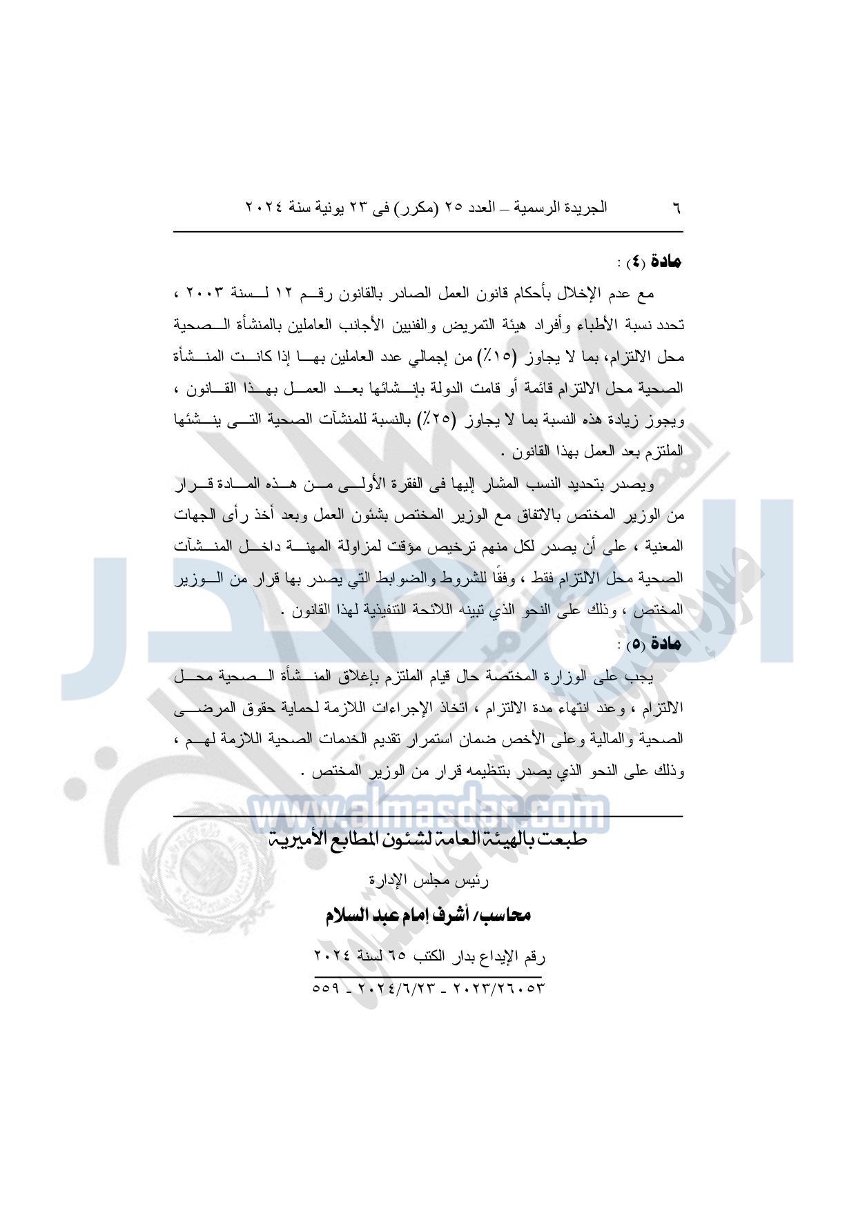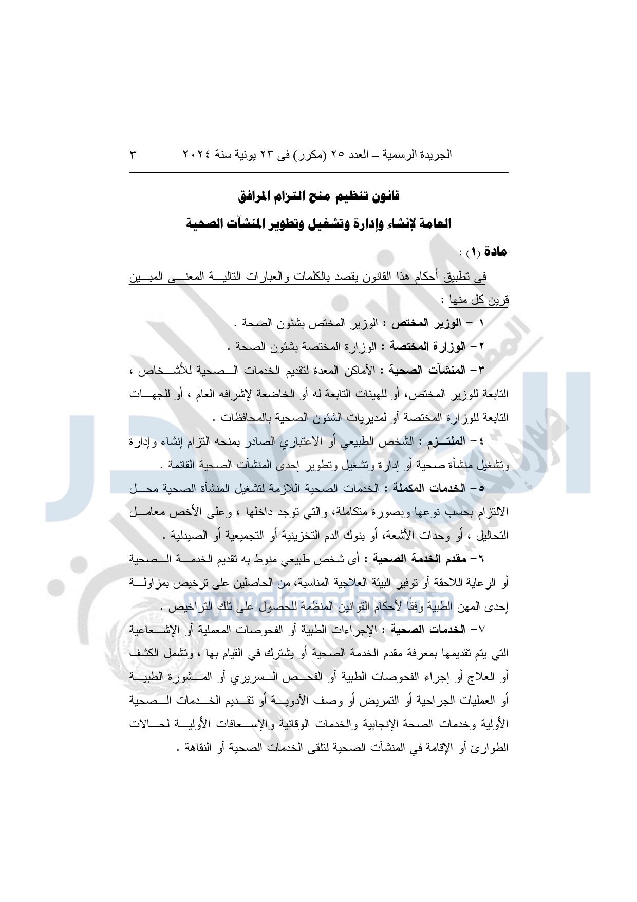 إصدار قانون تنظيم منح التزام المرافق العامة لإنشاء وإدارة وتشغيل المنشآت الصحية