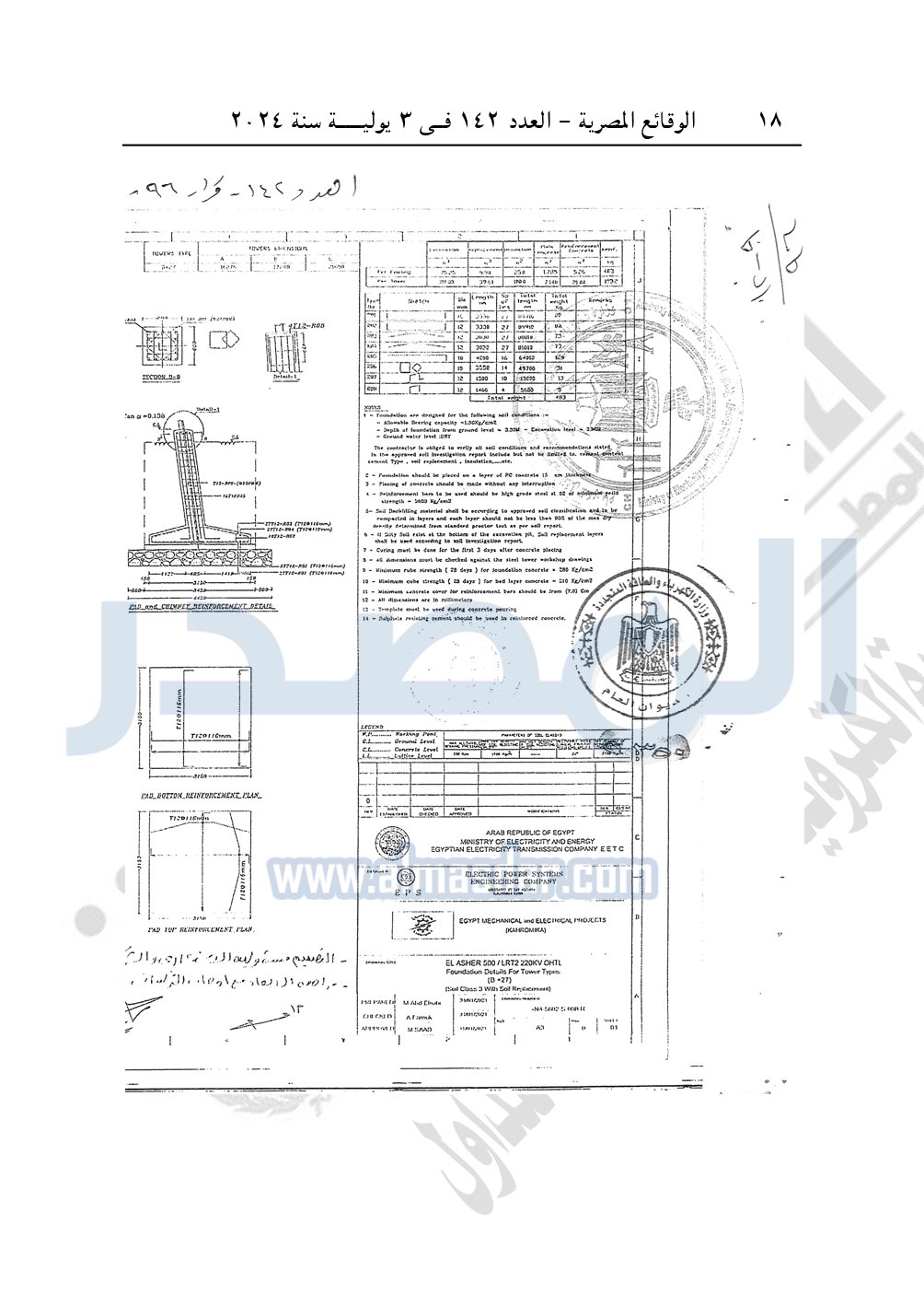 نشرت الوقائع المصرية في العدد 142، بتاريخ 3 يوليو سنة 2024، قرار وزارة الكهرباء والطاقة المتجددة رقم 96 لسنة 2024، صادر بتاريخ 22-5-2024، بشأن تننفيذ وإقامة وشد الموصلات للأبراج من البرج رقم "3" وحتى البرج رقم "27" بالخط الكهربائى.