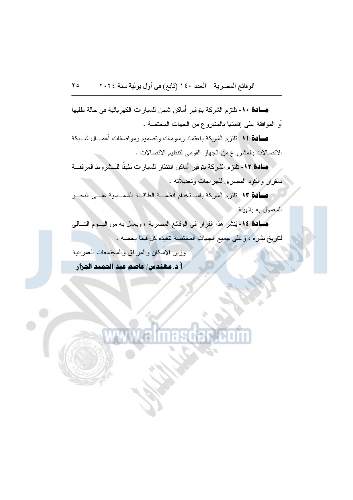 نشرت الوقائع المصرية في العدد 140 "تابع"، بتاريخ 1 يوليو سنة 2024، قرار وزارة الإسكان والمرافق والمجتمعات العمرانية رقم 2 لسنة 2024، بتاريخ 2-1-2024، بشأن اعتماد تخطيط وتقسيم قطعة الأرض رقم "274/230/2017" بمساحة 6.46 فدان بما يعادل "27124.88 م2" الواقعة بمنطقة القرار الجمهورى رقم 230 لسنة 2017 بمدينة الشيخ زايد المخصصة لشركة إيجى بلان جروب للتنمية العقارية لإقامة مشروع عمراني متكامل.