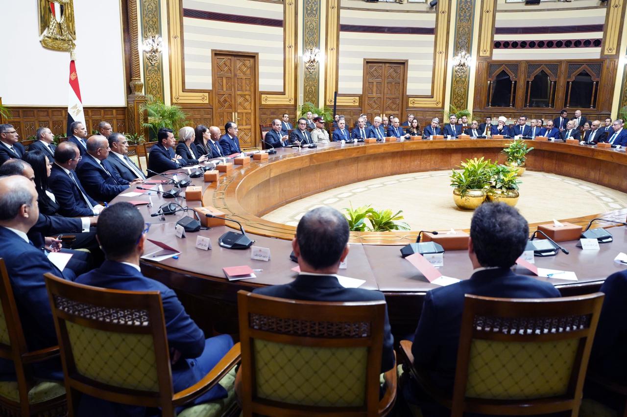 السيسي يجتمع مع رئيس الوزراء وأعضاء الحكومة الجديدة