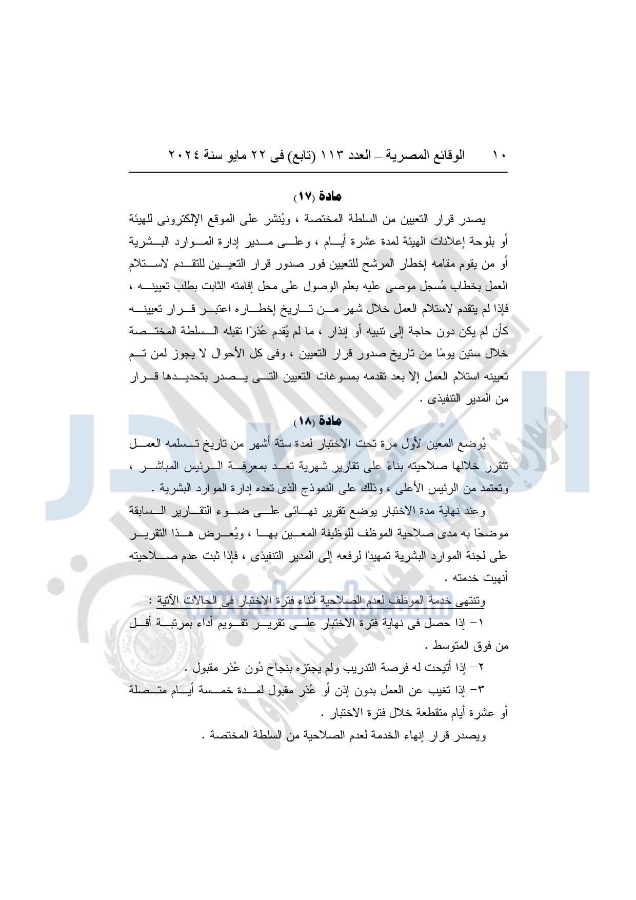 نشرت الوقائع المصرية في العدد 113 "تابع"، بتاريخ 22 مايو 2024، قرار الهيئة العامة للتأمين الصحي الشامل رقم 35 لسنة 2019، بشأن إصدار لائحة الموارد البشرية لموظفي الهيئة العامة للتأمين الصحي الشامل.