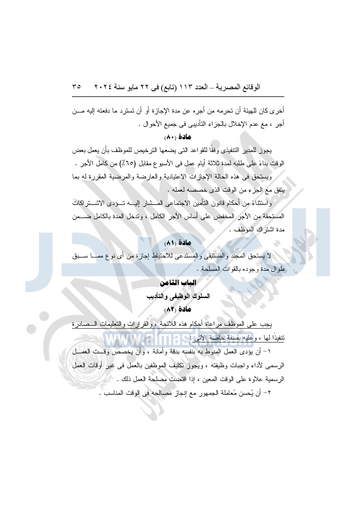 كما نشرت الوقائع المصرية في العدد 113 تابع "تابع"، بتاريخ 22 مايو 2024، قرار الهيئة العامة للتأمين الصحي الشامل رقم 35 لسنة 2019، بشأن تعديل بعض أحكام لائحة الموارد البشرية لموظفى الهيئة العامة للتأمين الصحي الشامل.