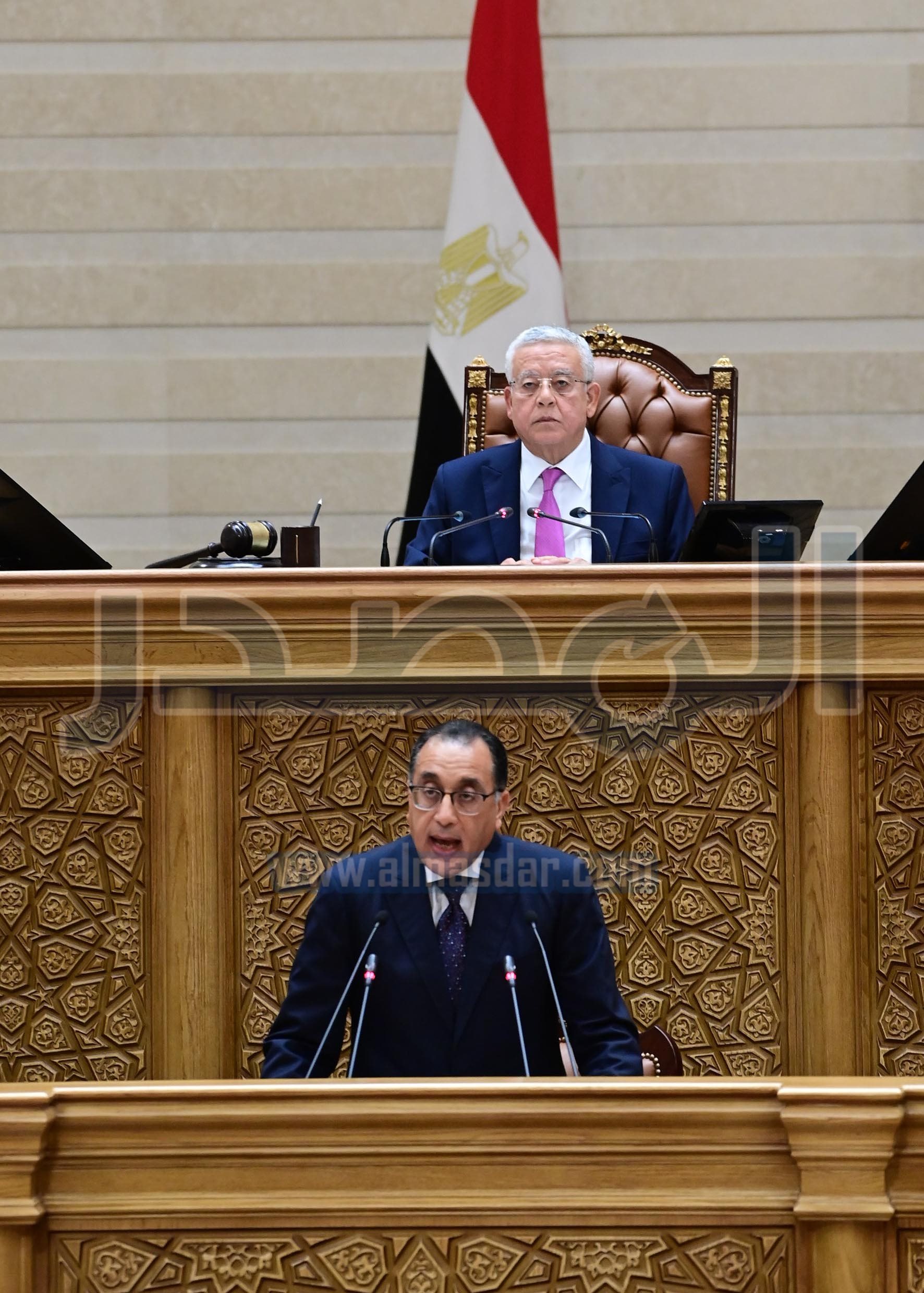 ألقى الدكتور مصطفى مدبولي، رئيس مجلس الوزراء، اليوم الإثنبن، بيان الحكومة، أمام مجلس النواب، بمقر البرلمان بالعاصمة الإدارية الجديدة، بحضور كامل تشكيل الحكومة التي أدت اليمين الدستورية مُؤخراً، ويشمل برنامج عملها للسنوات الثلاث المقبلة، الذي يأتي تحت عنوان "معًا نبني مستقبلًا مستدامًا".