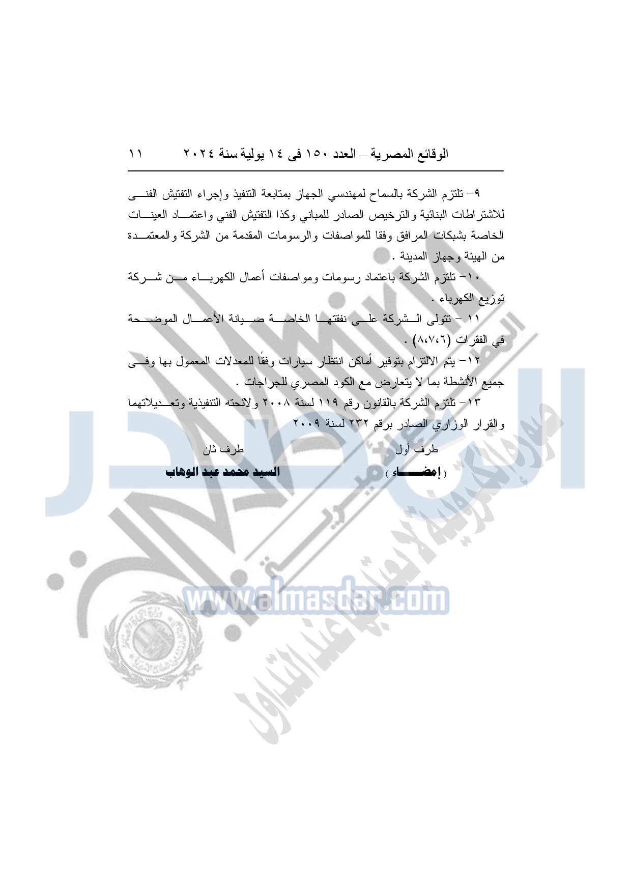 وأشارت، إلى أن المادة الثانية تنص علي أن تلتزم الشركة المخصص لها قطعة الأرض بالبرنامج الزمني المعتم علي أن يكون تنفيذ المشروع بالكامل خلال المدة المحددة بالبند الثامن من عقد البيع المؤرخ 15-8-2022 ، وفي حالة عدم الالتزام به لسب لا تقبله الهيئة يتم اتخاذ الإجراءات القانونية المناسبة في هذا الشأن.