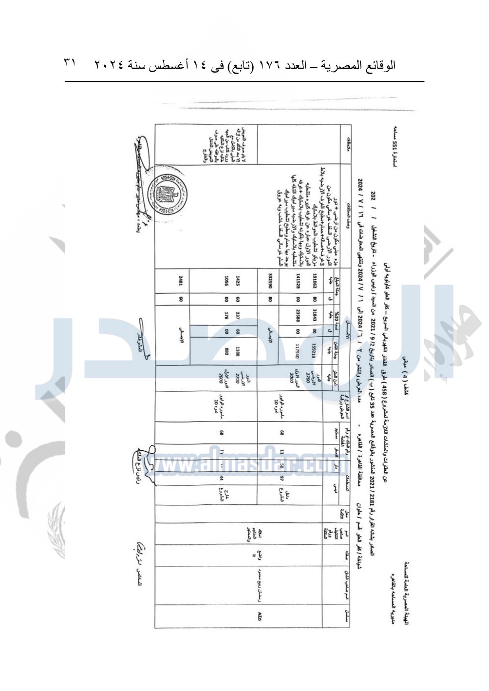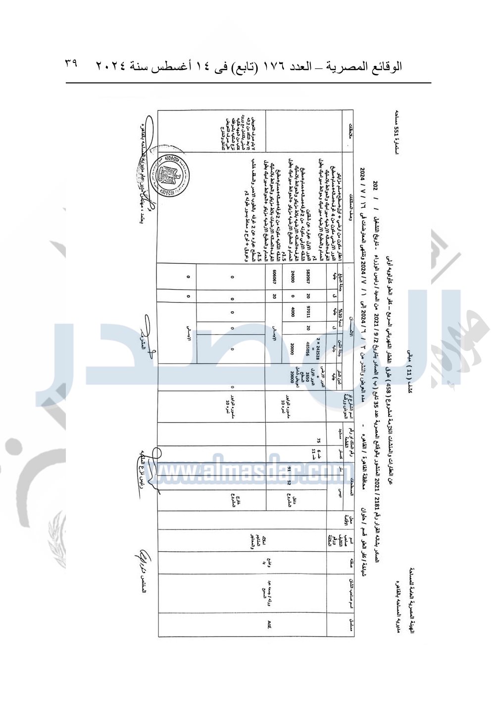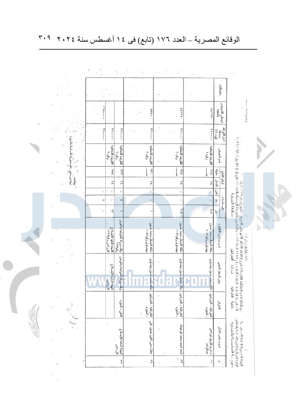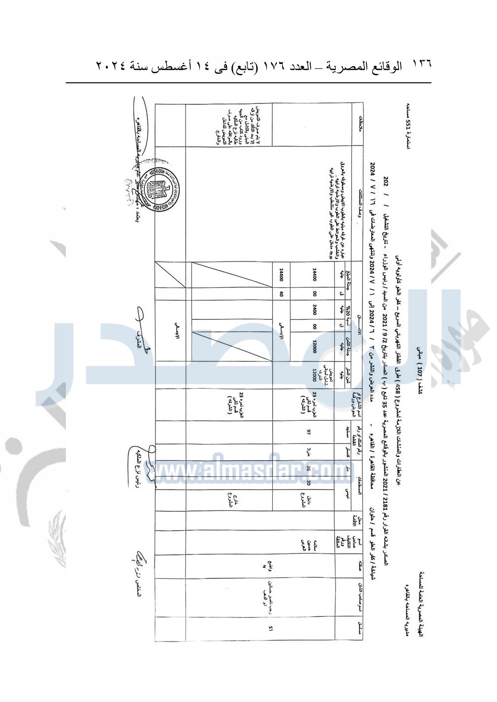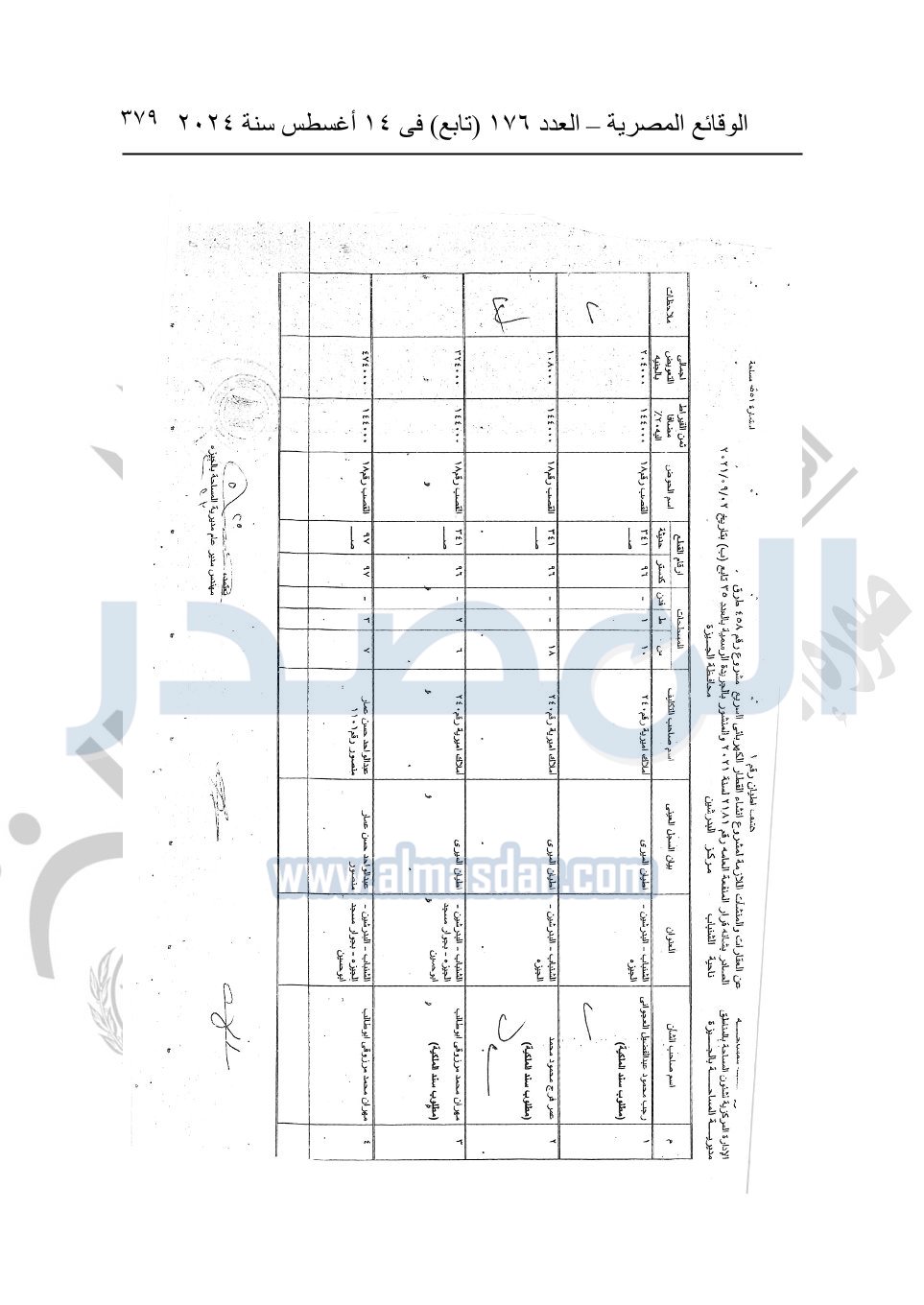 نشرت الوقائع المصرية في العدد 176 "تابع"، في 14 أغسطس 2024، قرار وزارة النقل رقم 456 لسنة 2024، صادر في 17-7-2024، بشأن نزع ملكية بعض الأراضي والعقارات لتنفيذ مشروع القطار الكهربائي السريع.