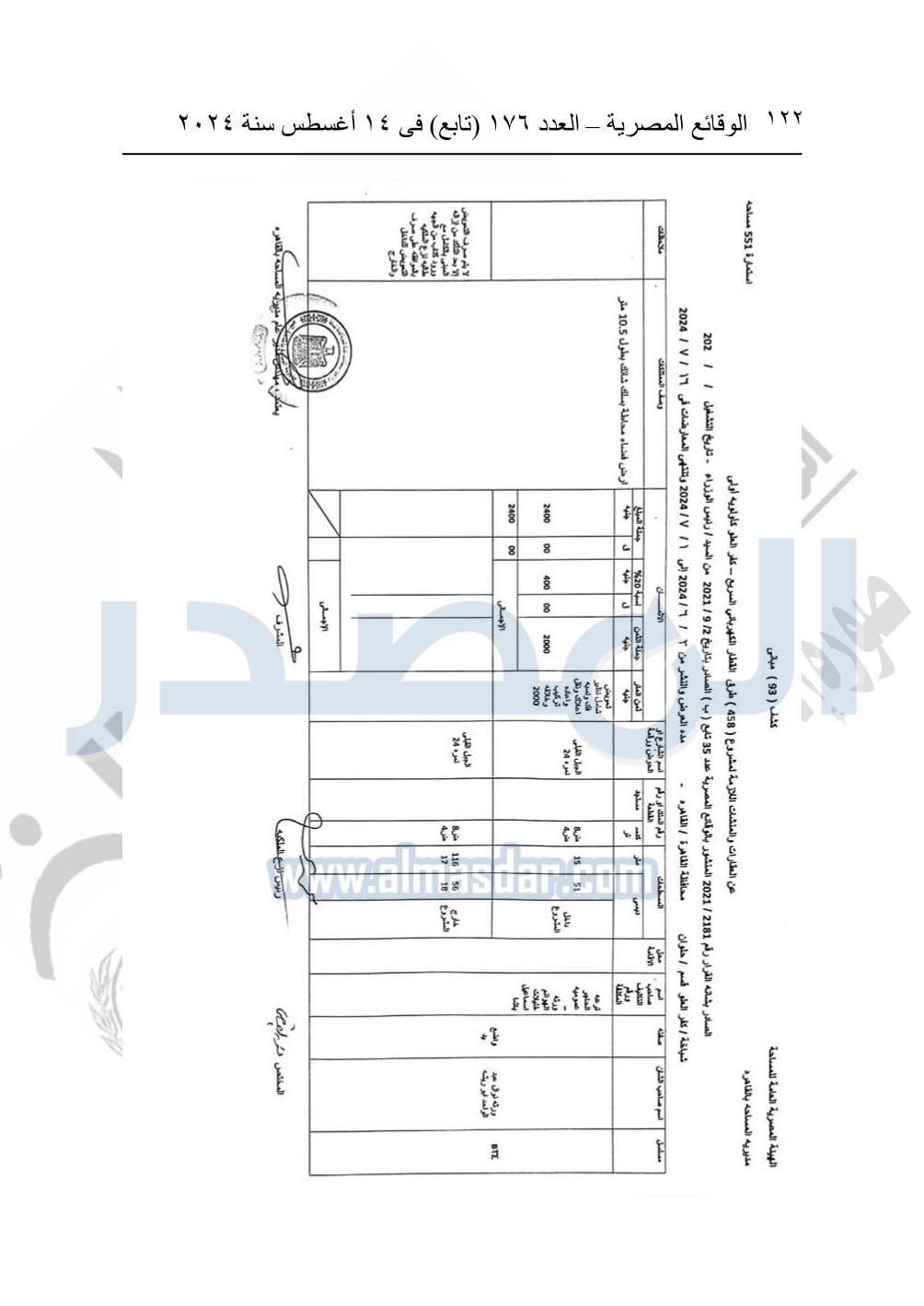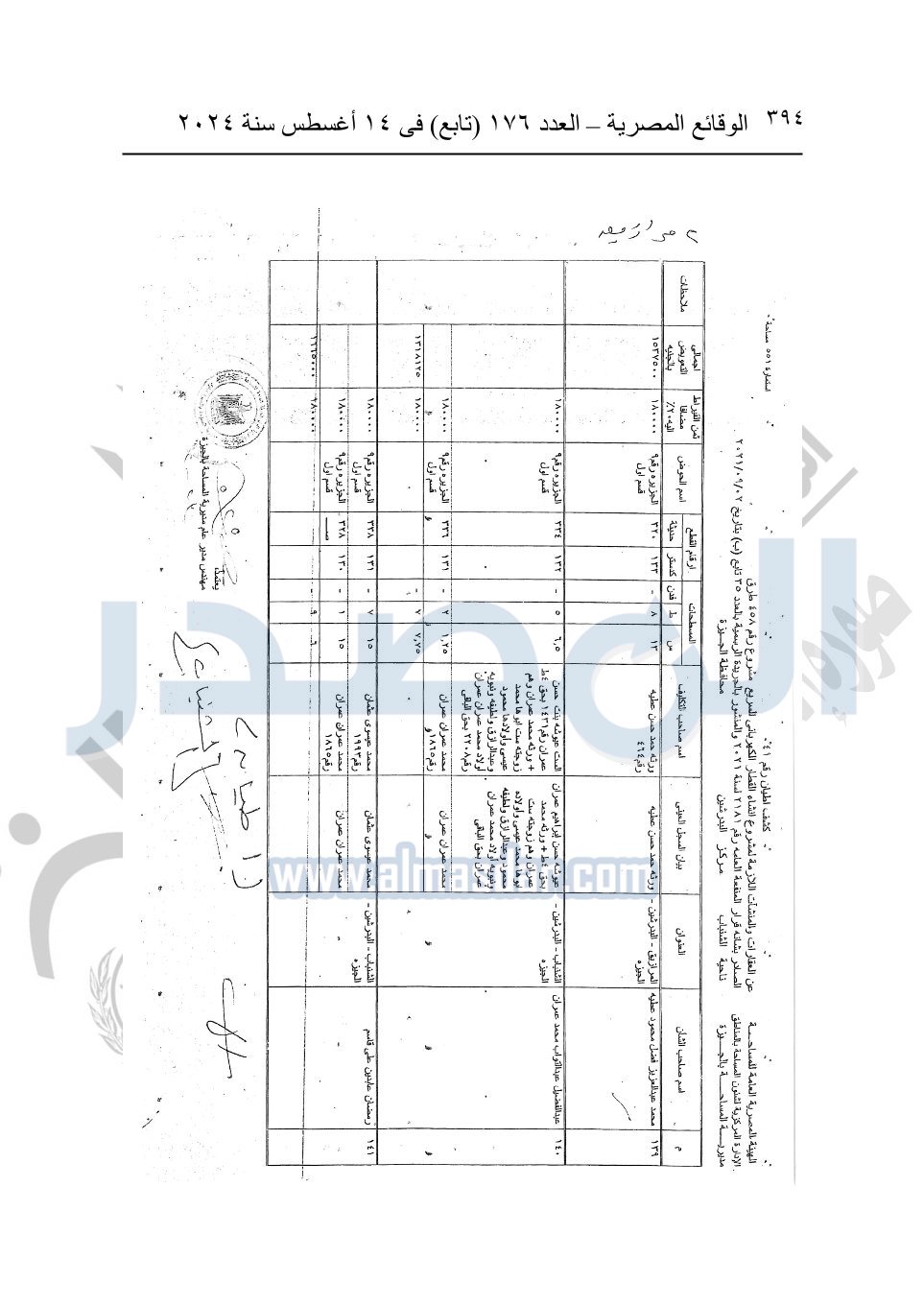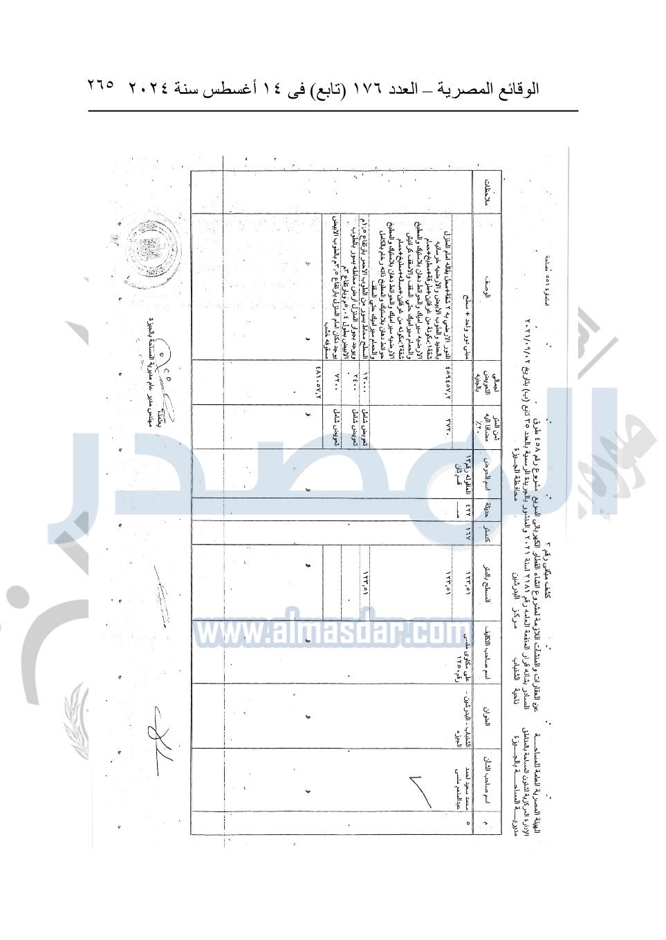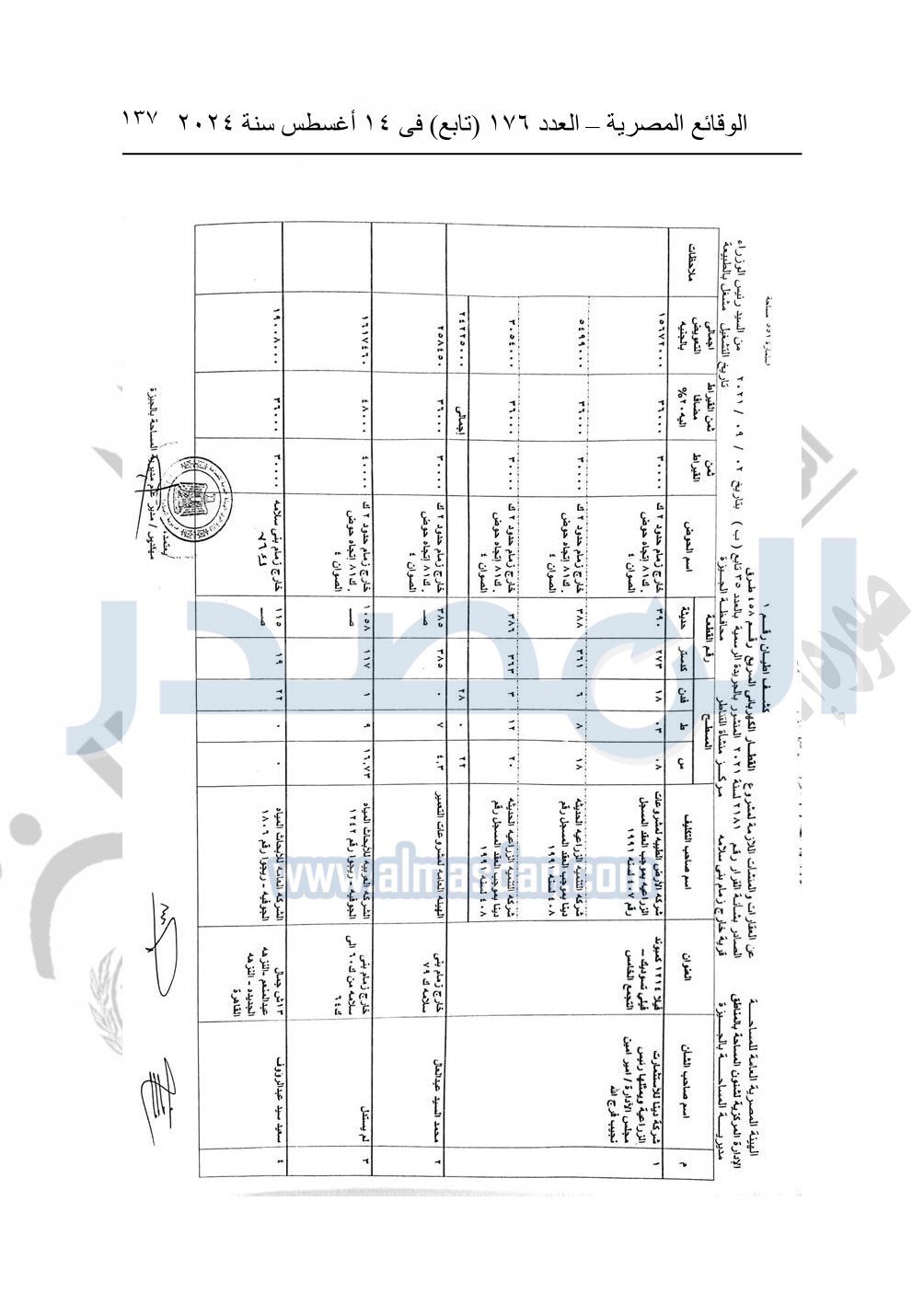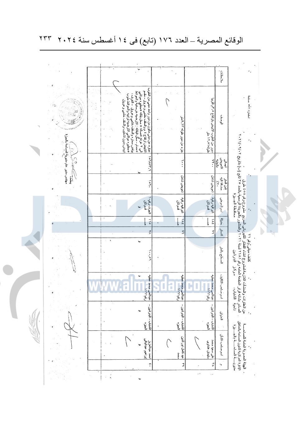 نشرت الوقائع المصرية في العدد 176 "تابع"، في 14 أغسطس 2024، قرار وزارة النقل رقم 456 لسنة 2024، صادر في 17-7-2024، بشأن نزع ملكية بعض الأراضي والعقارات لتنفيذ مشروع القطار الكهربائي السريع.